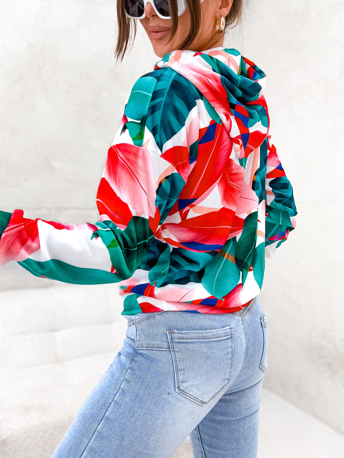 WZORZYSTA BLUZA Z KAPTUREM- MORSKA