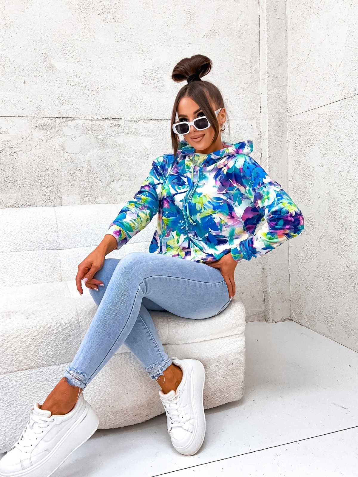 WZORZYSTA BLUZA Z KAPTUREM- NIEBIESKA