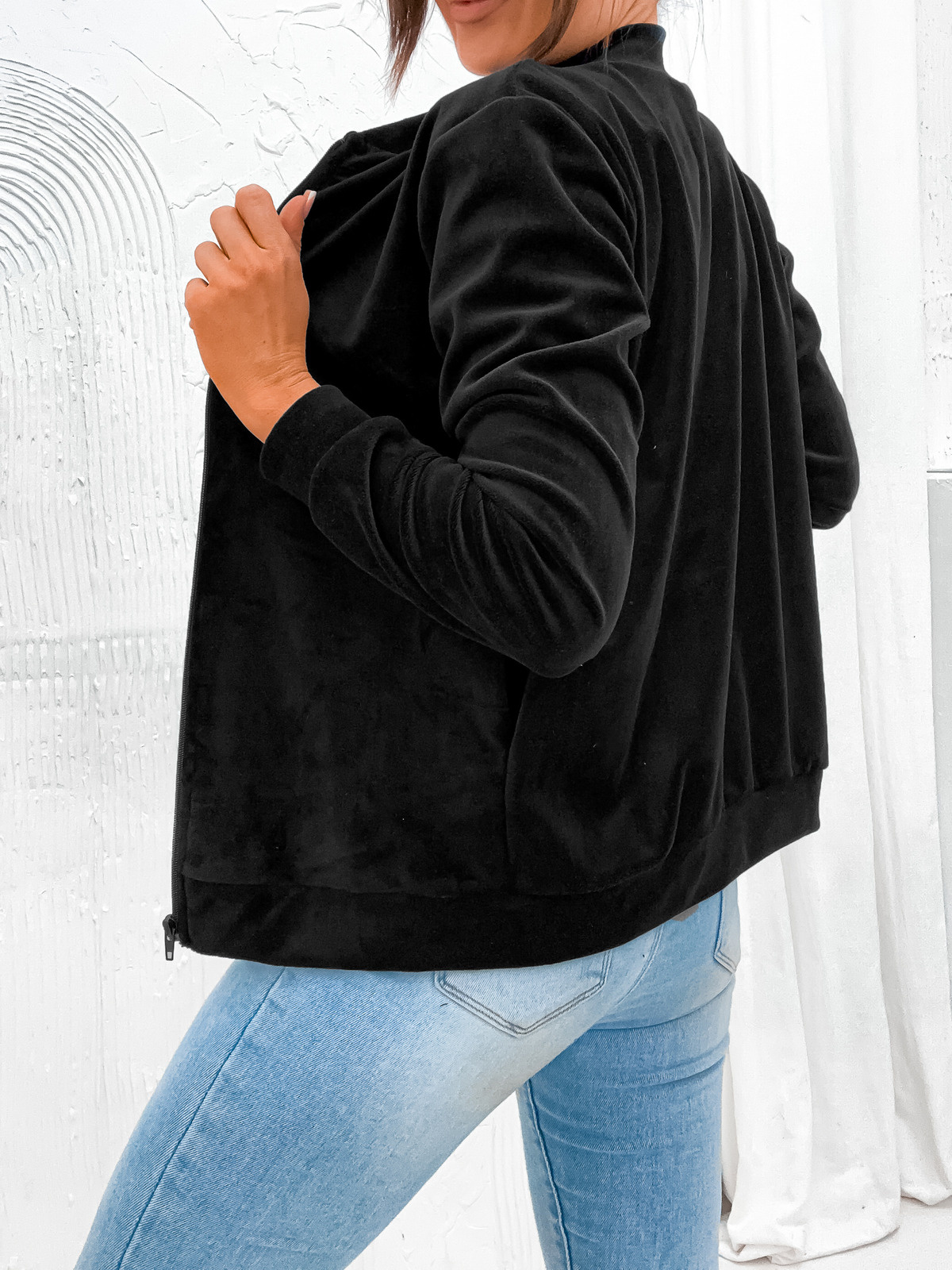 CZARNA WELUROWA BLUZA ZAPINANA NA ZAMEK