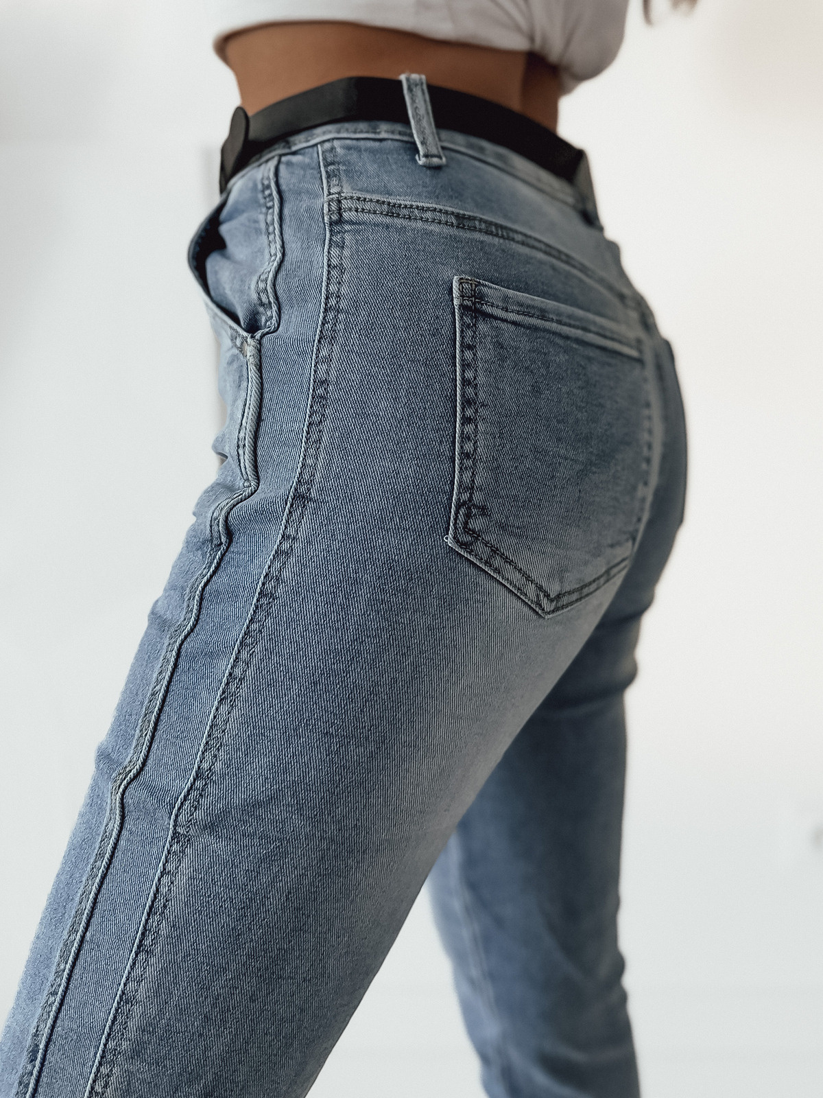 SPODNIE JEANSOWE Z OZDOBNYMI PRZESZYCIAMI NA NOGAWKACH- JEANS+ PASEK