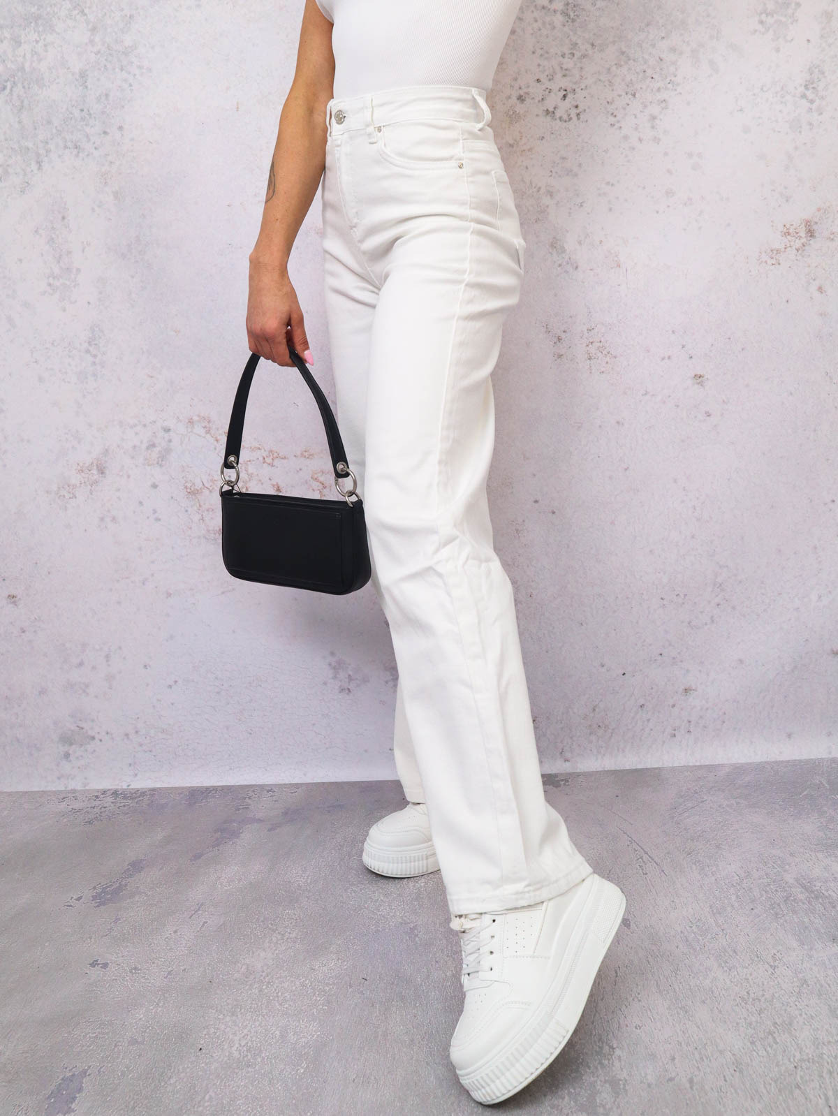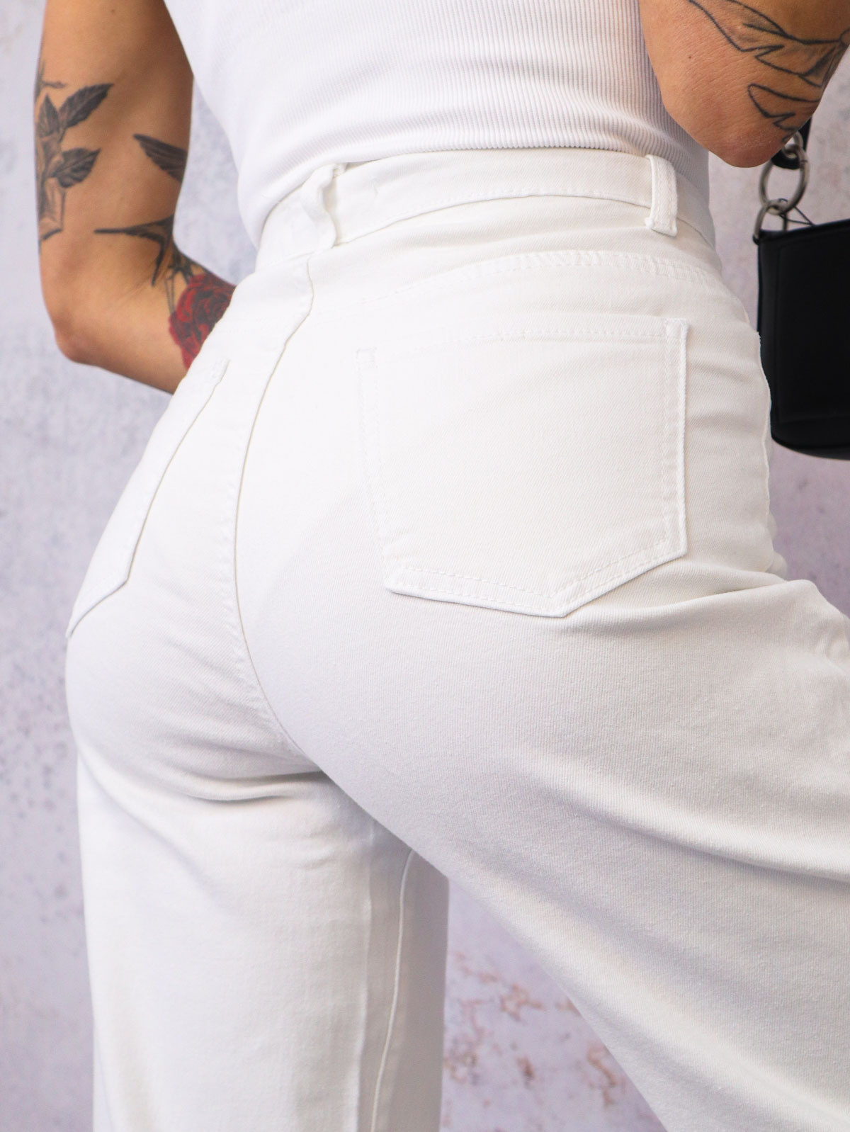 BIAŁE SPODNIE JEANSOWE Z SZEROKIMI NOGAWKAMI