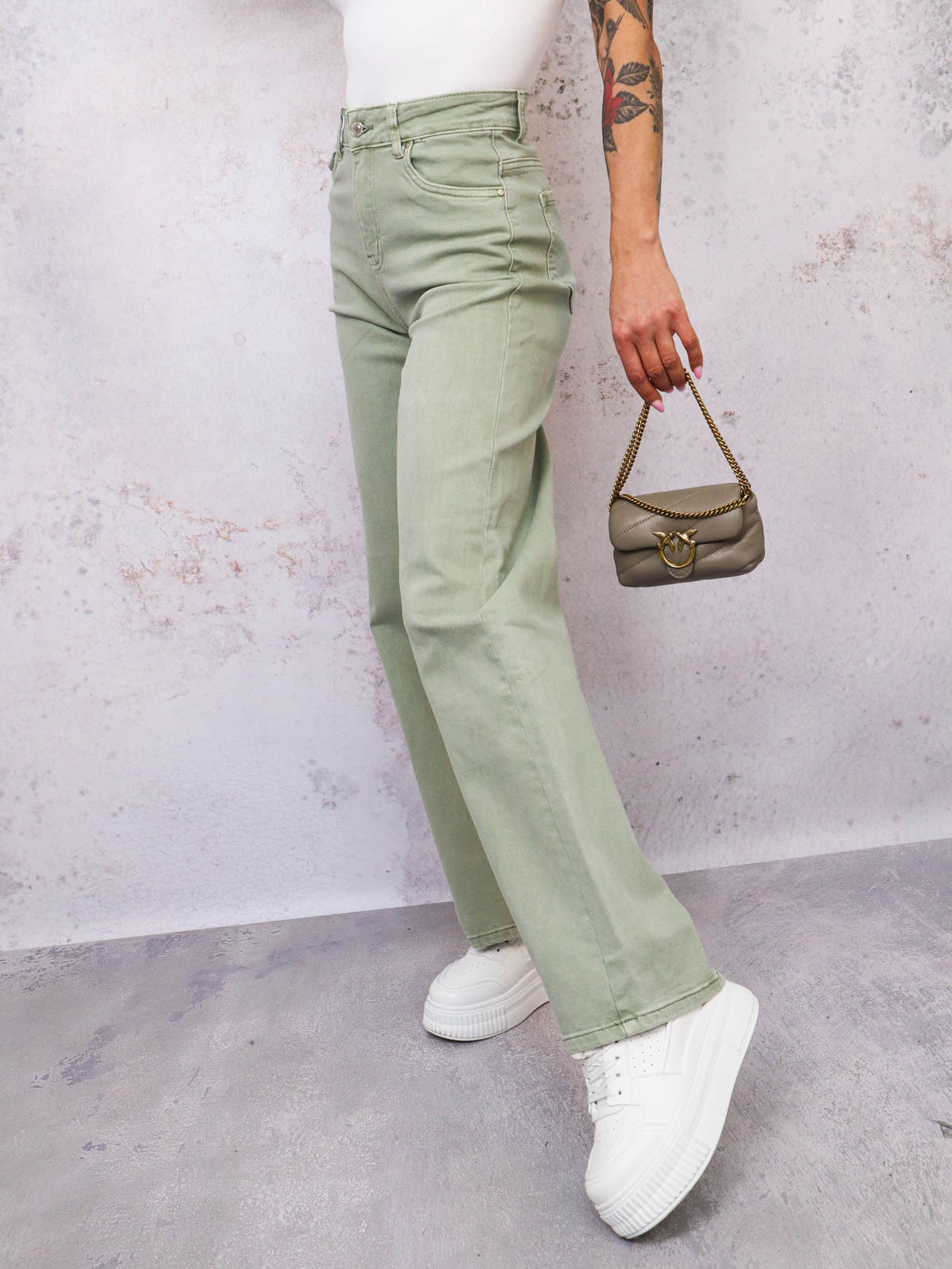 JASNO ZIELONE SPODNIE JEANSOWE Z SZEROKIMI NOGAWKAMI