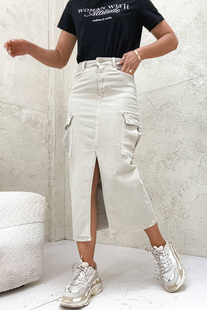 SPÓDNICA MIDI BOJÓWKA- BEŻOWA