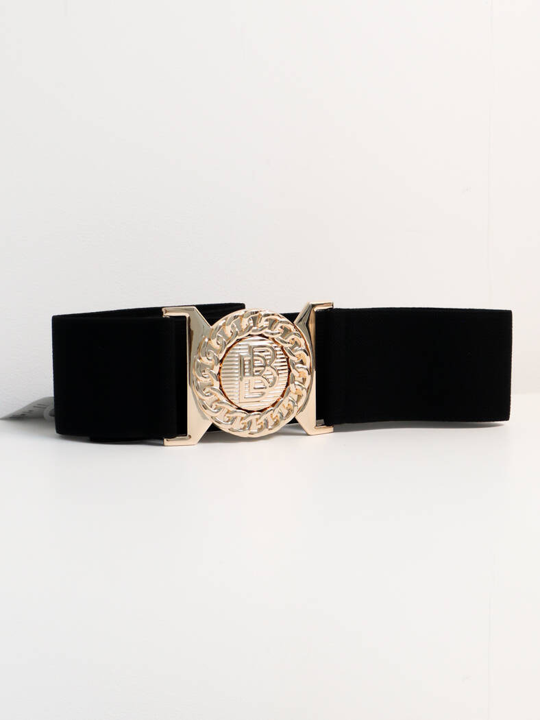 CZARNY PASEK NA GUMIE Z OZDOBNĄ KLAMRĄ BB
