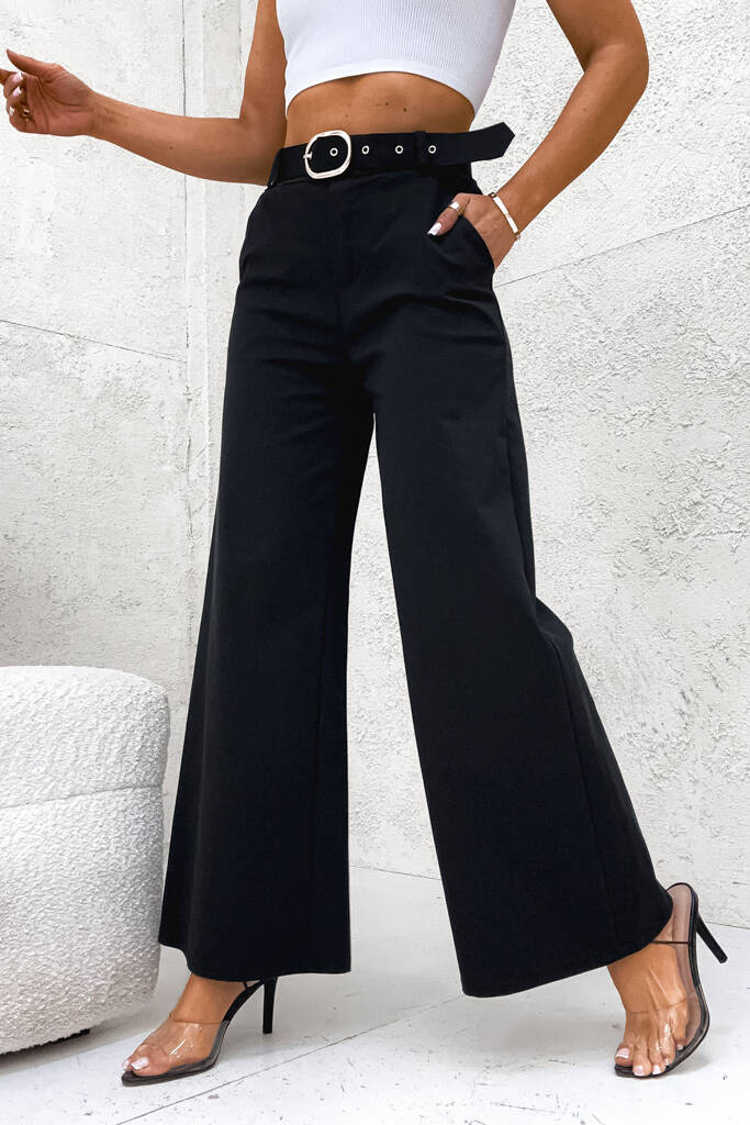 SPODNIE BAWEŁNIANE ONESIZE Z SZEROKĄ NOGAWKĄ I PASKIEM- CZARNE