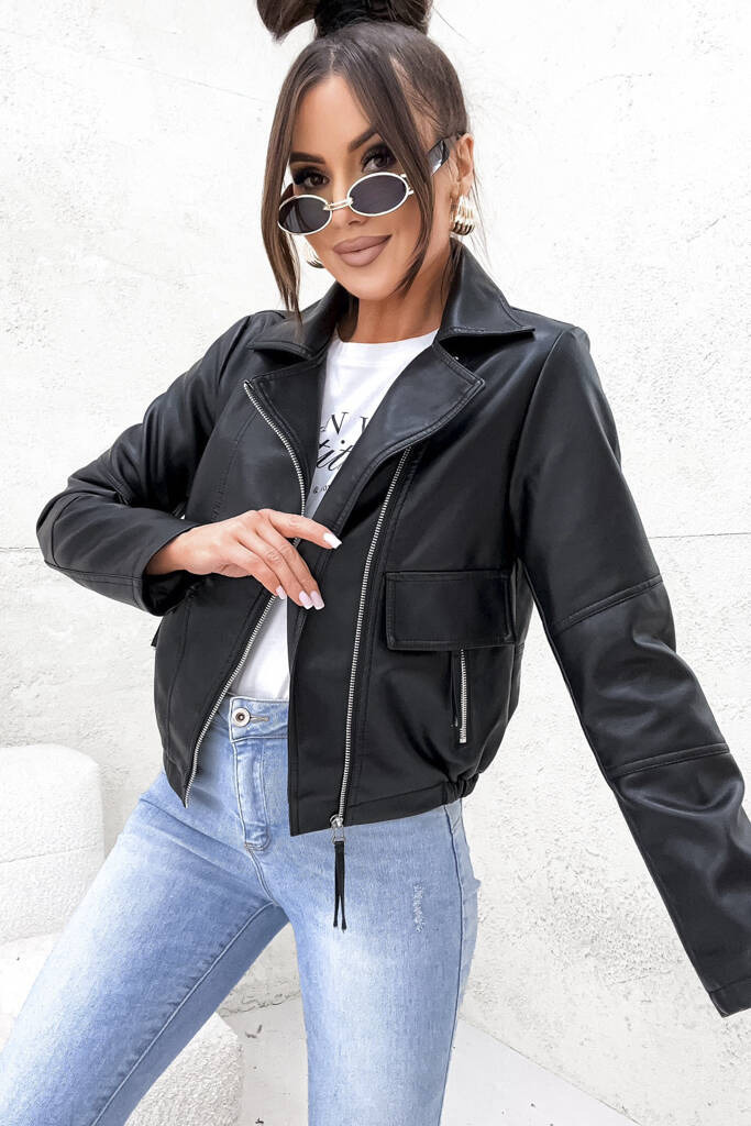 KURTKA Z IMITACJI SKÓRY RAMONESKA BOMBERKA- CZARNA