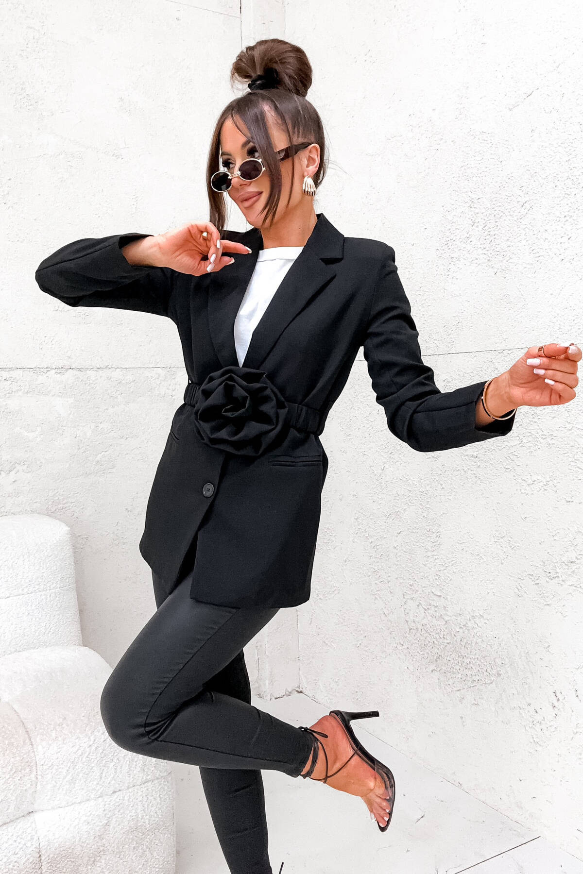 MARYNARKA Z DOPINANYM KWIATEM+ PASEK- CZARNA