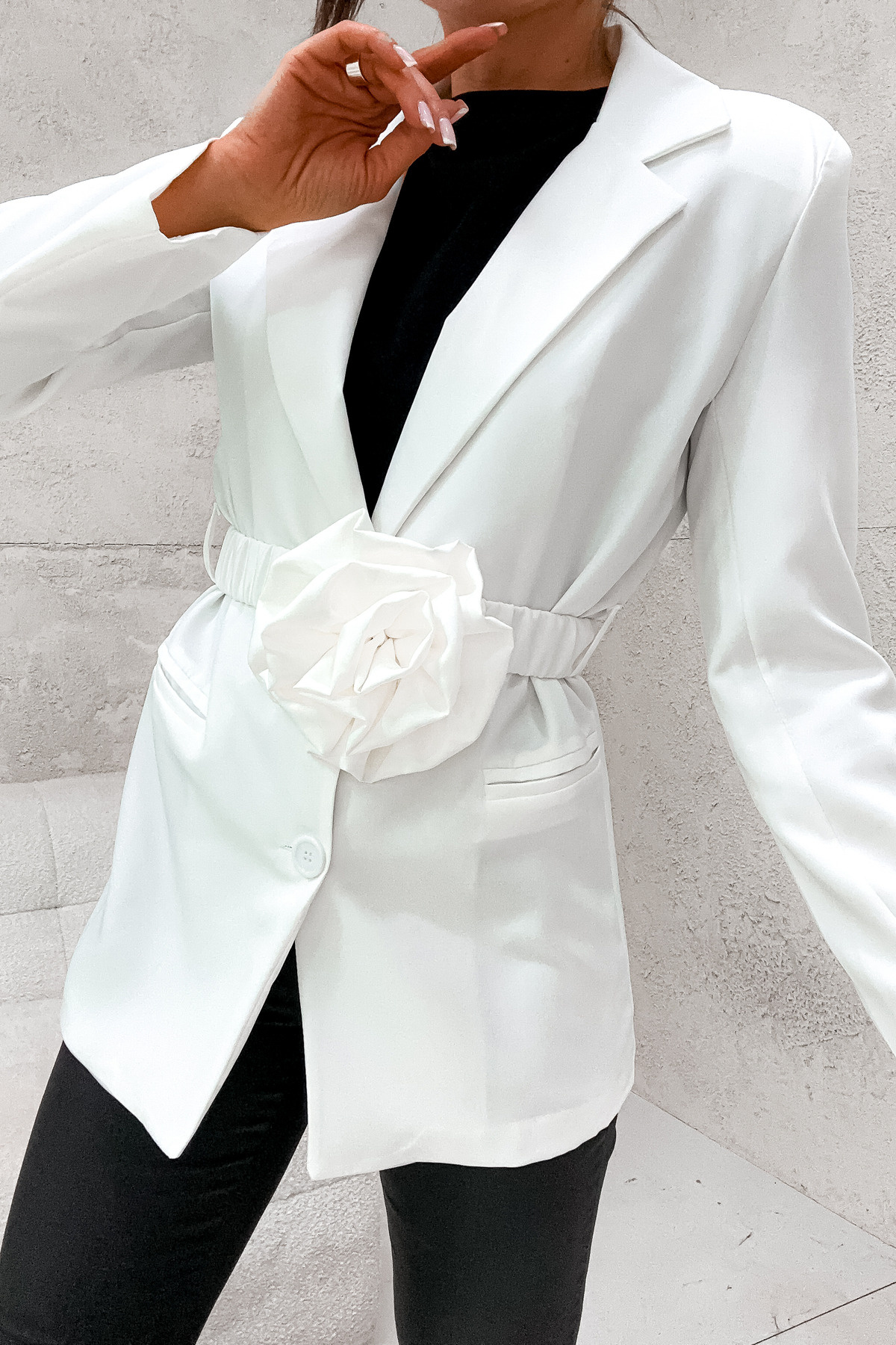 MARYNARKA Z DOPINANYM KWIATEM+ PASEK- BIAŁA