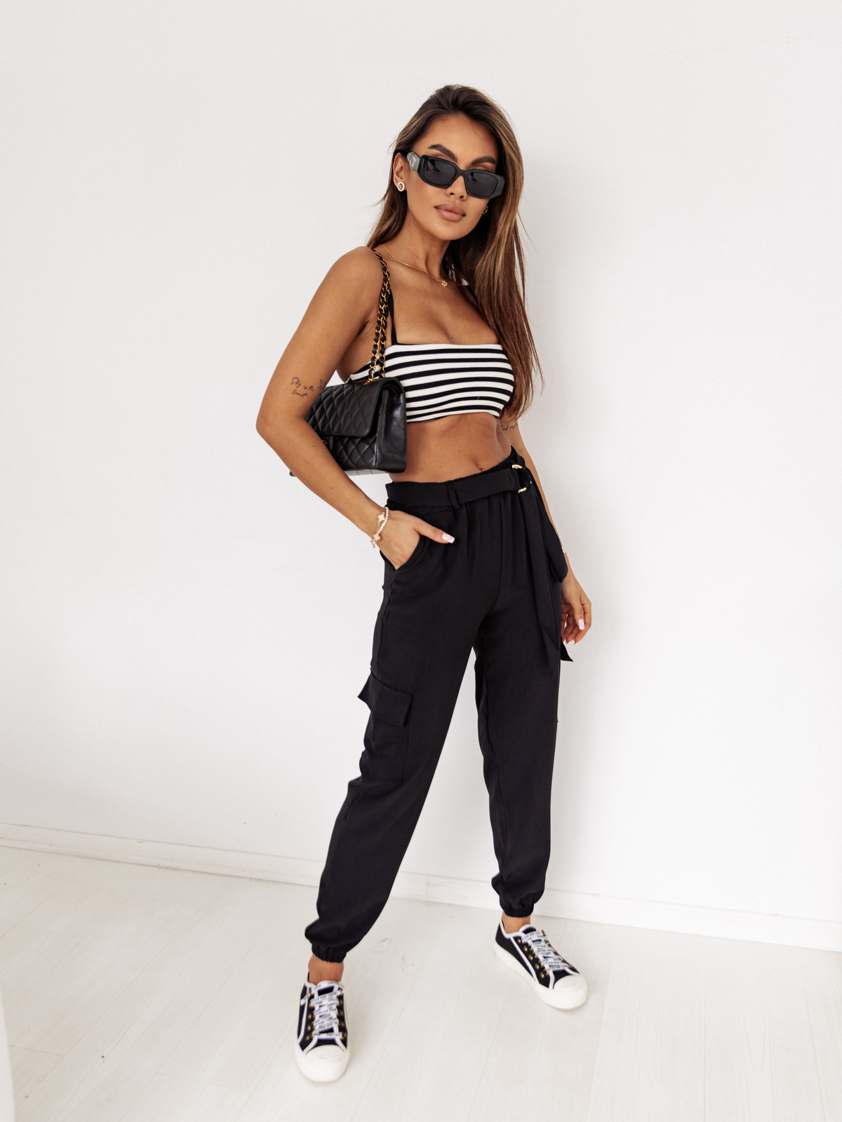 SPODNIE MATERIAŁOWE BOJÓWKI+PASEK- CZARNE