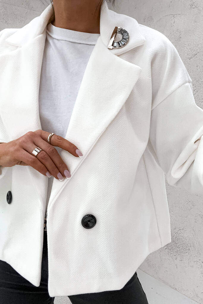 KURTKA DWURZĘDOWA O FASONIE MARYNARKI Z BROSZKĄ- EKRI