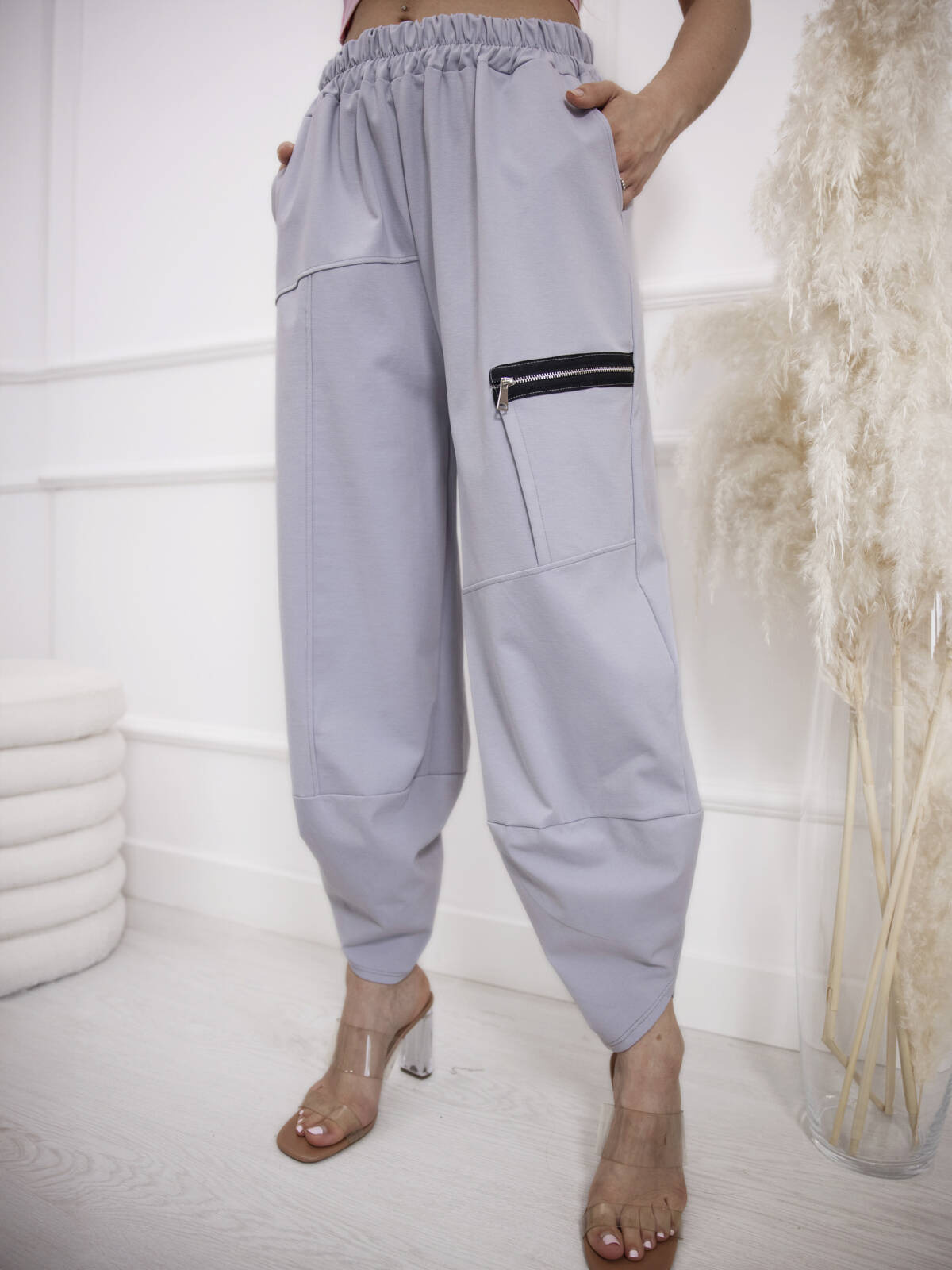 SPODNIE DRESOWE SZEROKIE Z ZAMKIEM NA NOGAWCE- SZARE