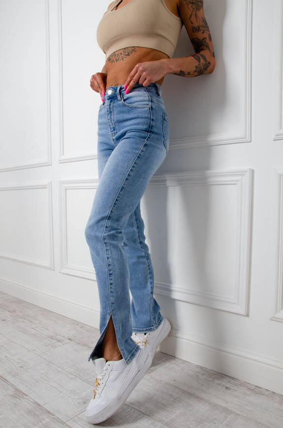 SPODNIE JEANSOWE Z WYSOKIM STANEM I WYCIĘCIEM NA NAGAWCE