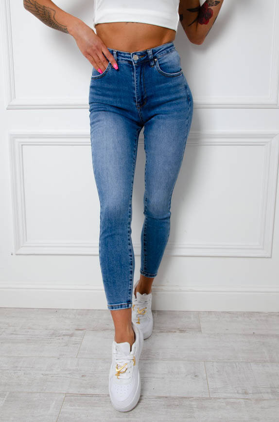 SPODNIE JEANSOWE Z WYSOKIM STANEM- NIEBIESKIE