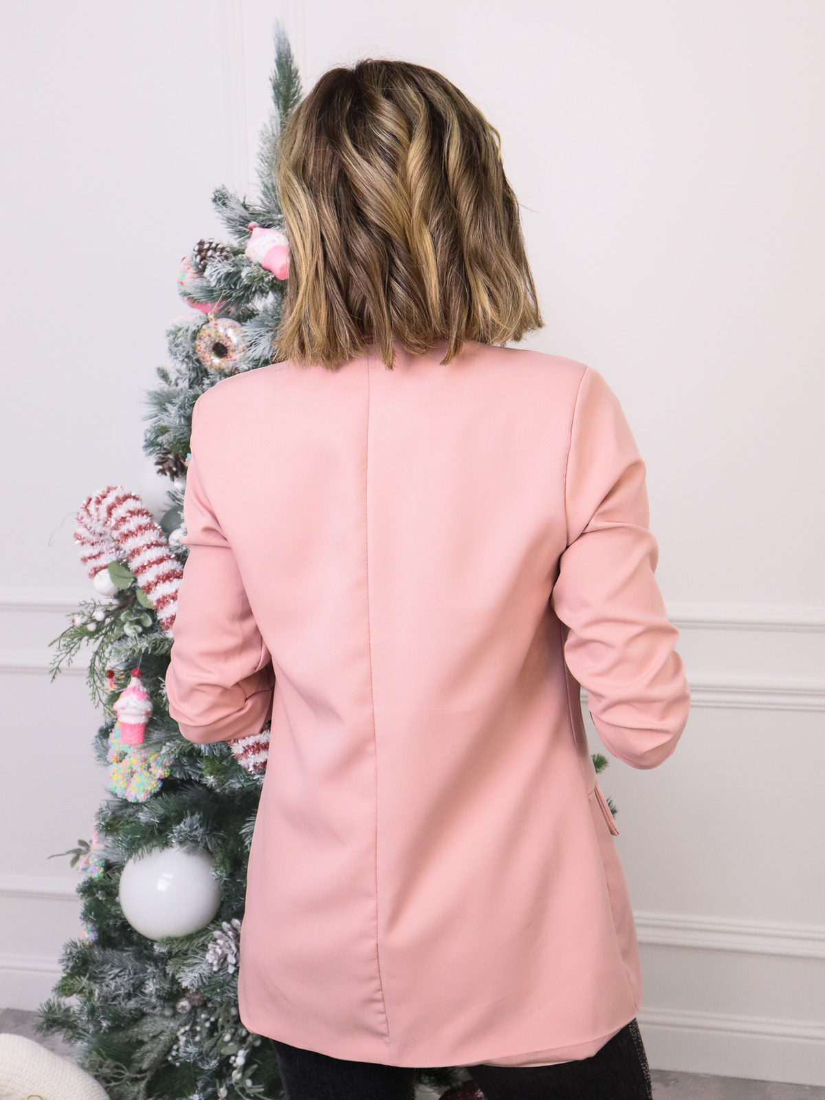 MARYNARKA BEZ ZAPIECIA Z MARSZCZONYMI RĘKAWAMI- PUDROWY RÓŻ