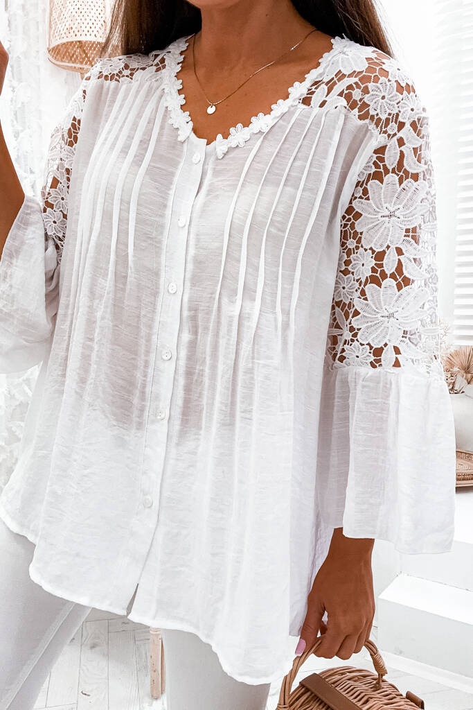 ASYMETRYCZNA BLUZKA Z REKAWAMI I PLECAMI Z KORONKI- BIAŁA