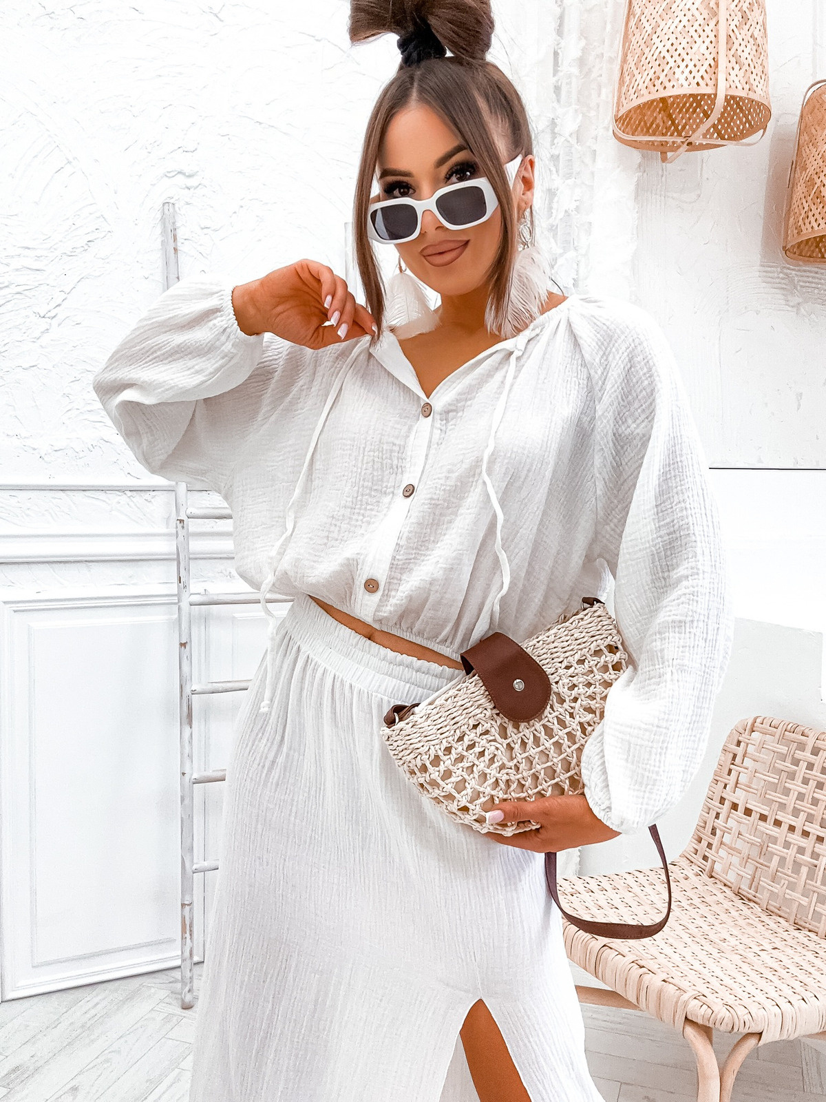 KOMPLET BAWEŁNIANY BLUZKA+ SPÓDNICA- EKRI