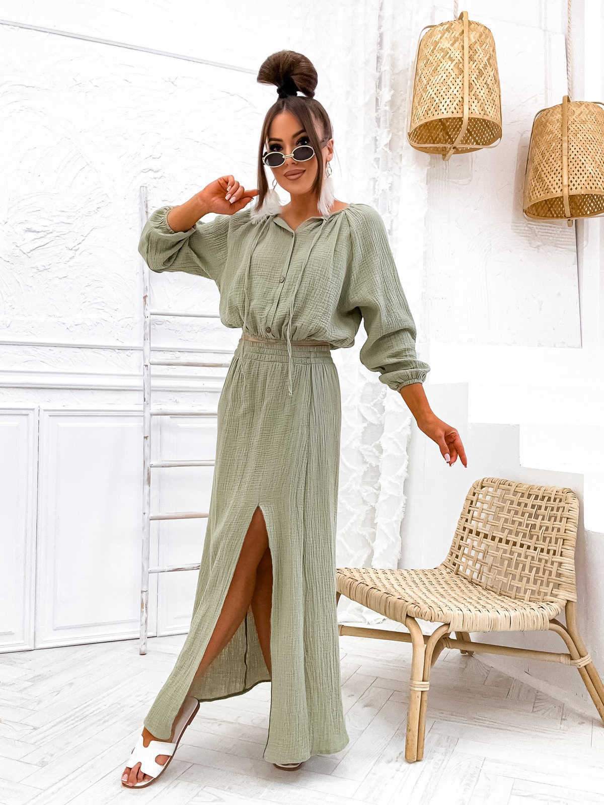 KOMPLET BAWEŁNIANY BLUZKA+ SPÓDNICA- ZIELONA