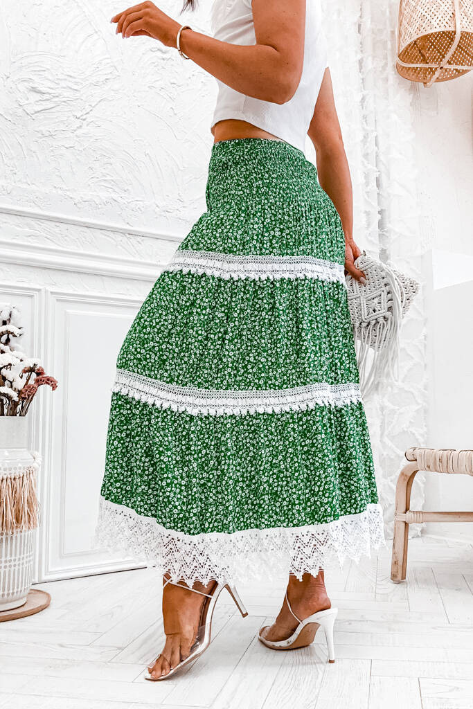 SPÓDNICA W KWIATY Z KORONKOWYMI WSTAWKAMI- ZIELONA