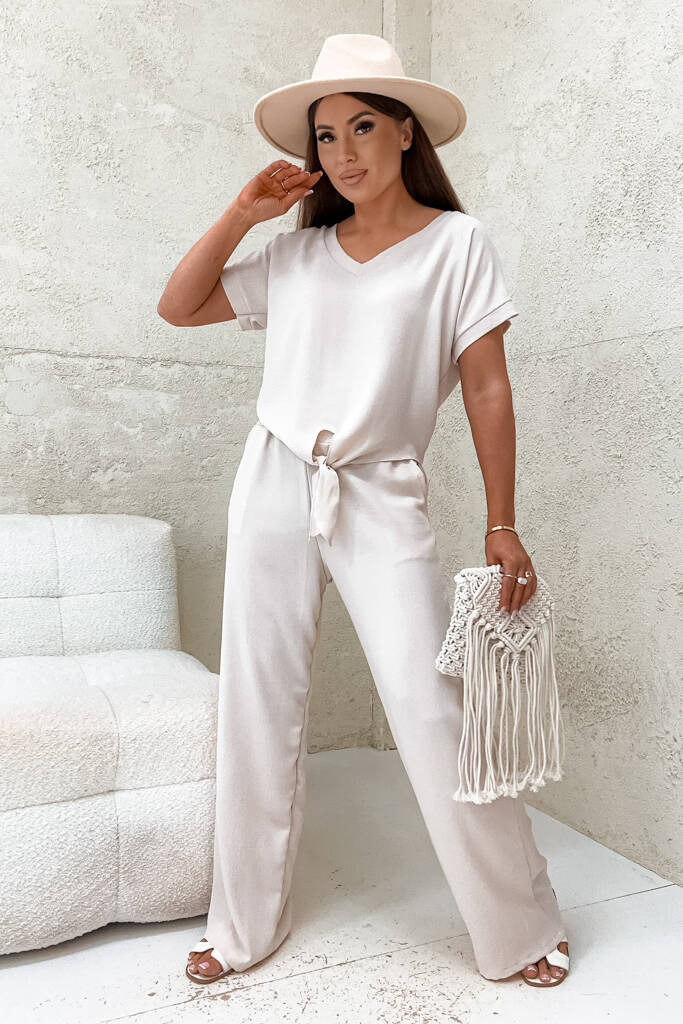 KOMPLET BLUZKA W SEREK+ SPODNIE- BEŻOWY