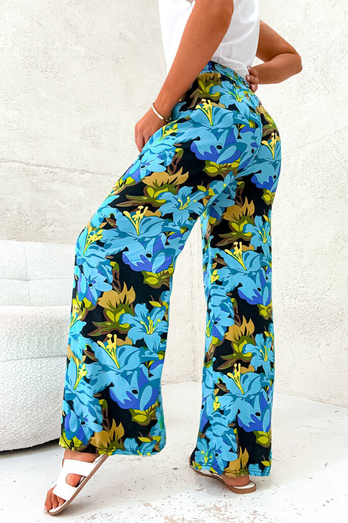 SPODNIE BAWEŁNIANE W KWIATY- NIEBIESKIE