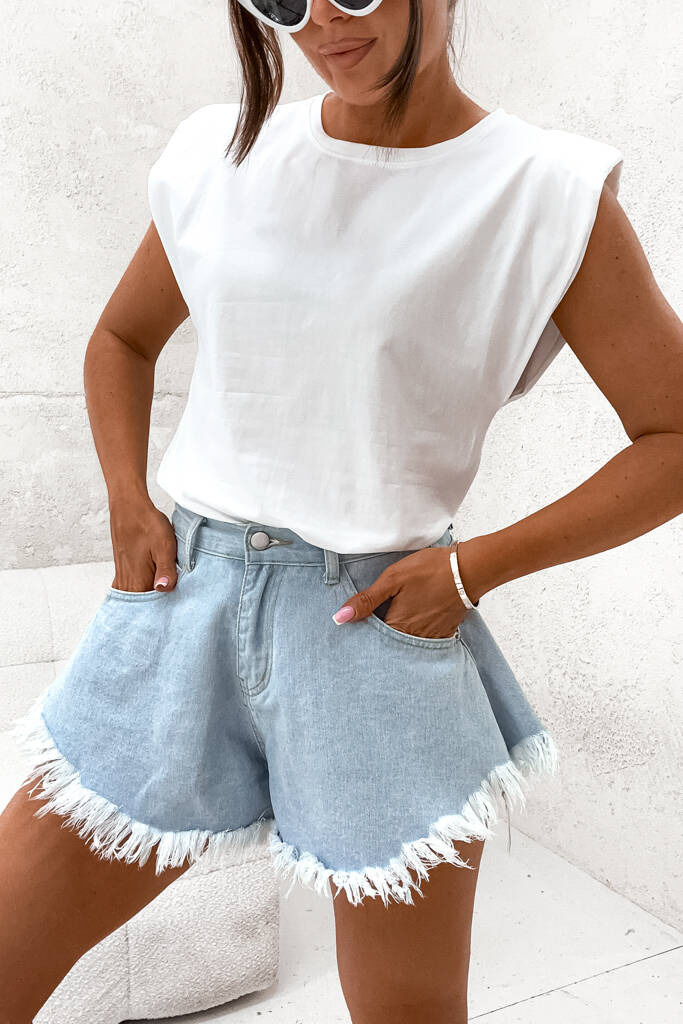 T-SHIRT BLUZKA Z PODUSZKAMI NA RAMIONACH- BIAŁA