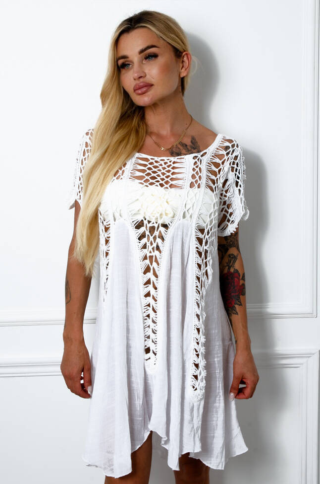 SUKIENKA PLAŻOWA Z AŻUROWYMI ZDOBIENIAMI- BIAŁA