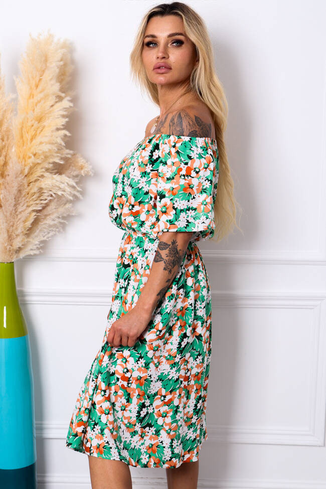 SUKIENKA MIDI HISZPANKA W KWIATY- ZIELONA
