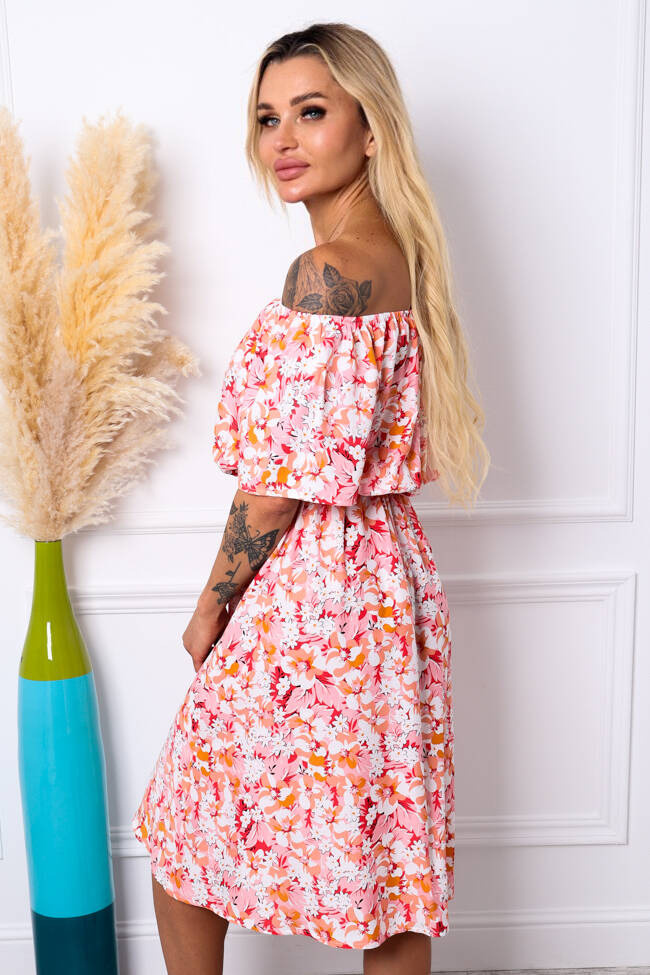 SUKIENKA MIDI HISZPANKA W KWIATY- RÓŻOWA