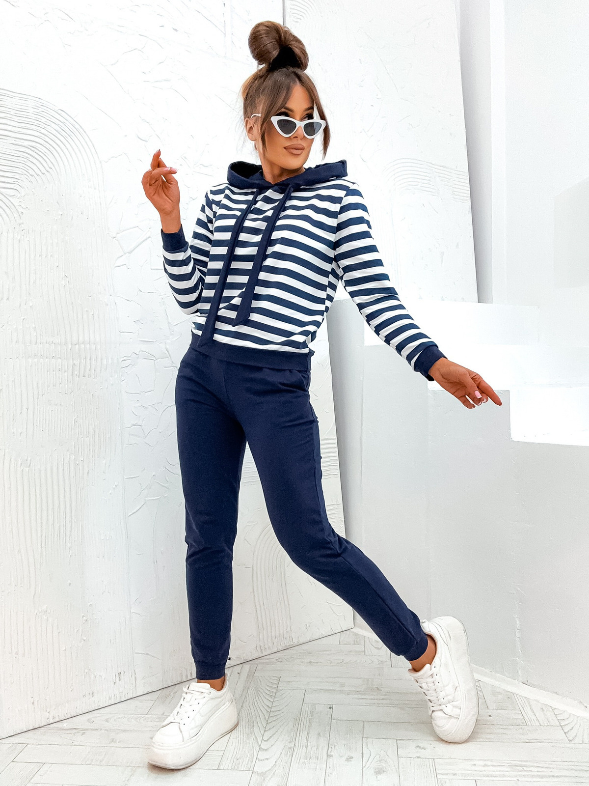 KOMPLET DRESOWY BLUZA W PASKI+ SPODNIE- GRANATOWY