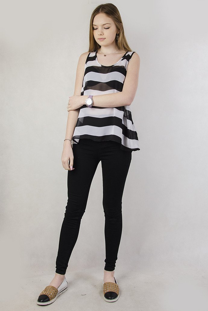 Letnia bluzeczka w paski, idealna na nadchodzące upały. Świetnie sprawdzi się jako dodatek do leginsów w trakcie ćwiczeń czy do spodenek w trakcie wyjścia na plażę.