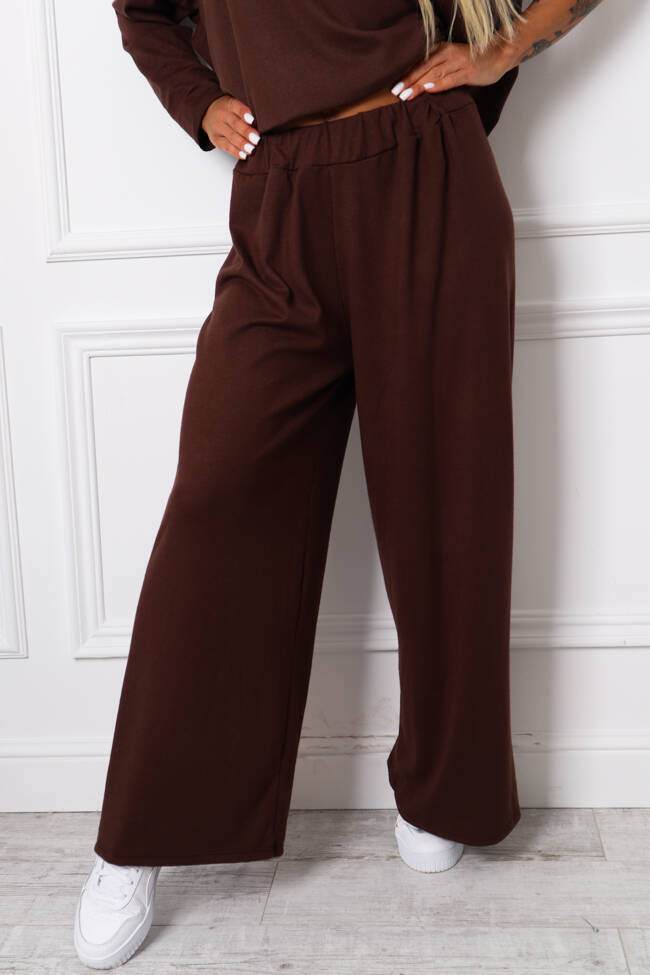 SPODNIE DZIANINOWE Z SZEROKIMI NOGAWKAMI- BRĄZOWE