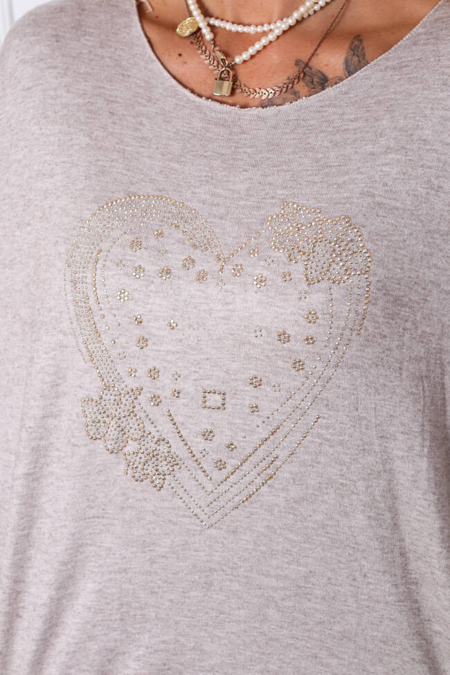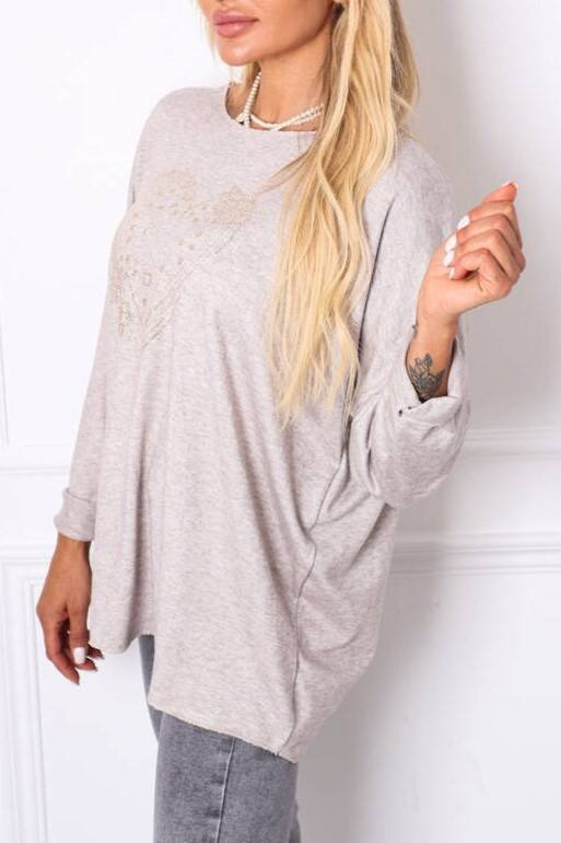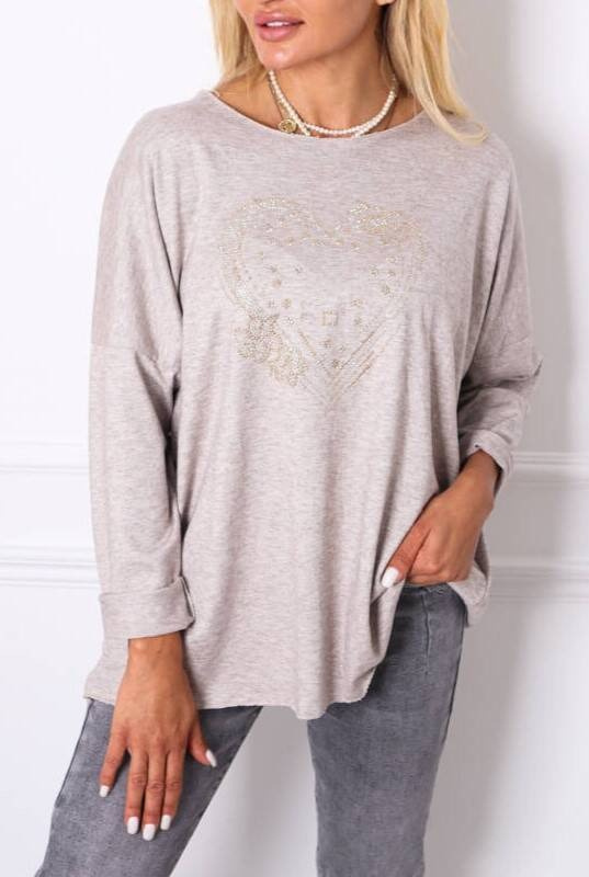 DZIANINOWA BLUZKA Z CEKINOWYM SERCEM- SZARA