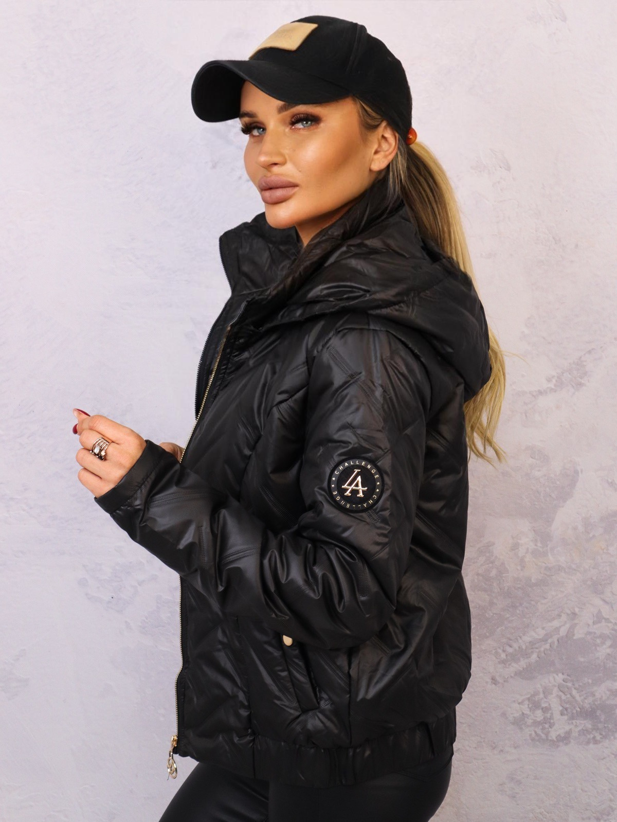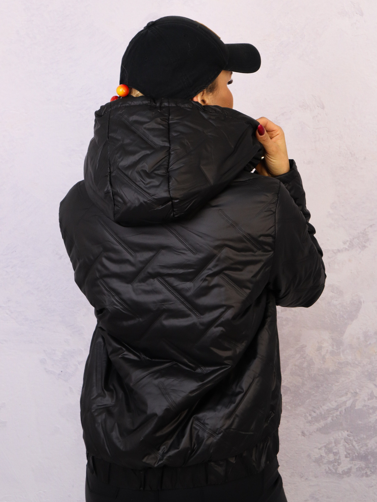 KURTKA PRZEJŚCIOWA Z NASZYWKĄ NA RĘKAWIE- CZARNA