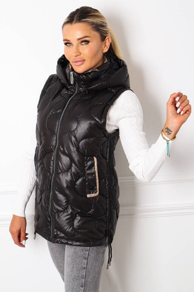 CZARNA PIKOWANA KAMIZELKA ZE ŚCIĄGACZAMI PO BOKACH
