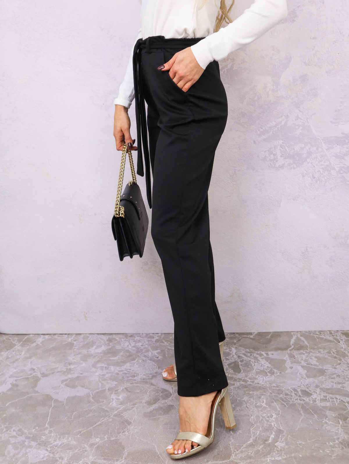 ELEGANCKIE SPODNIE Z WIĄZANIEM W PASIE- CZARNE