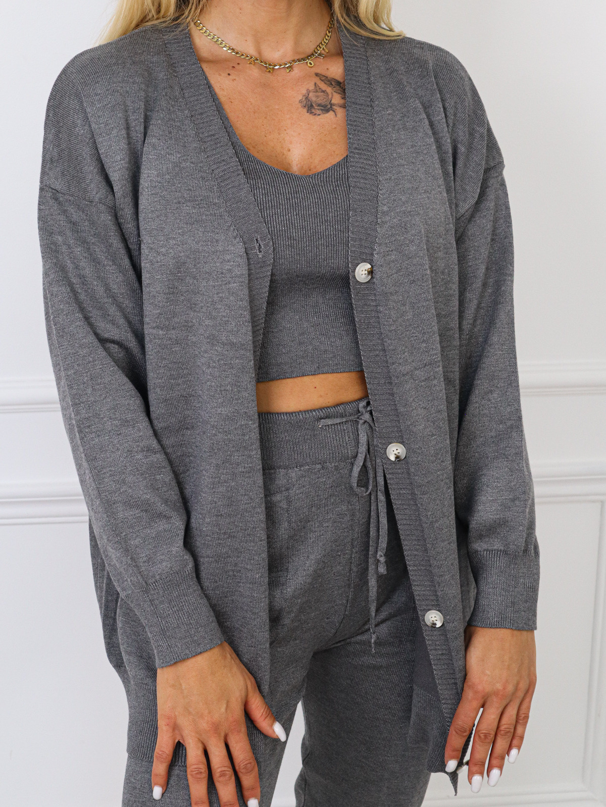 KOMPLET DZIANINOWY SPODNIE+ TOP+ KARDIGAN- SZARY