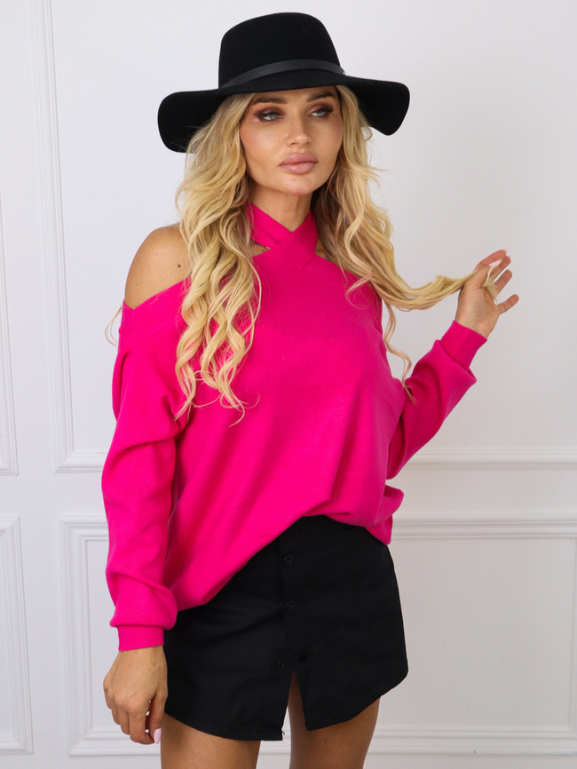 SWETER Z OZDOBNYM DEKOLTEM- RÓŻOWY