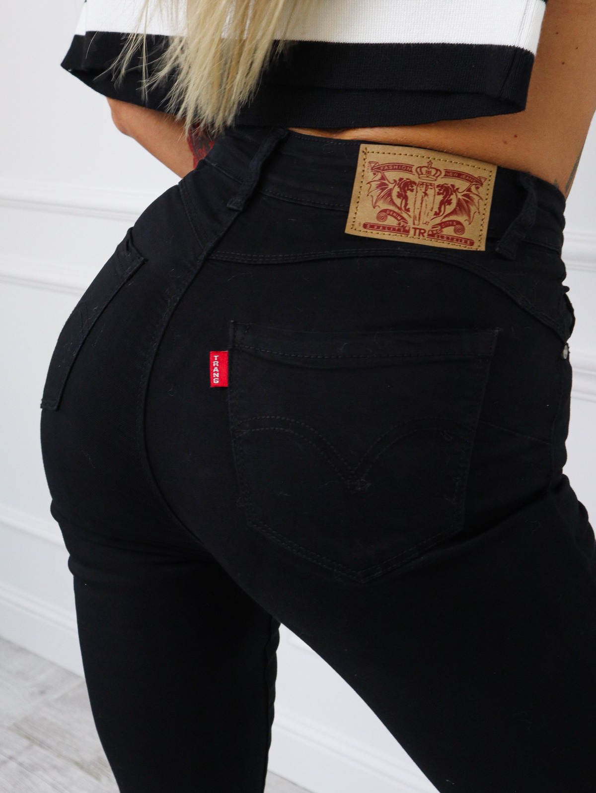 CZARNE SPODNIE PUSH UP Z WYSOKIM STANEM