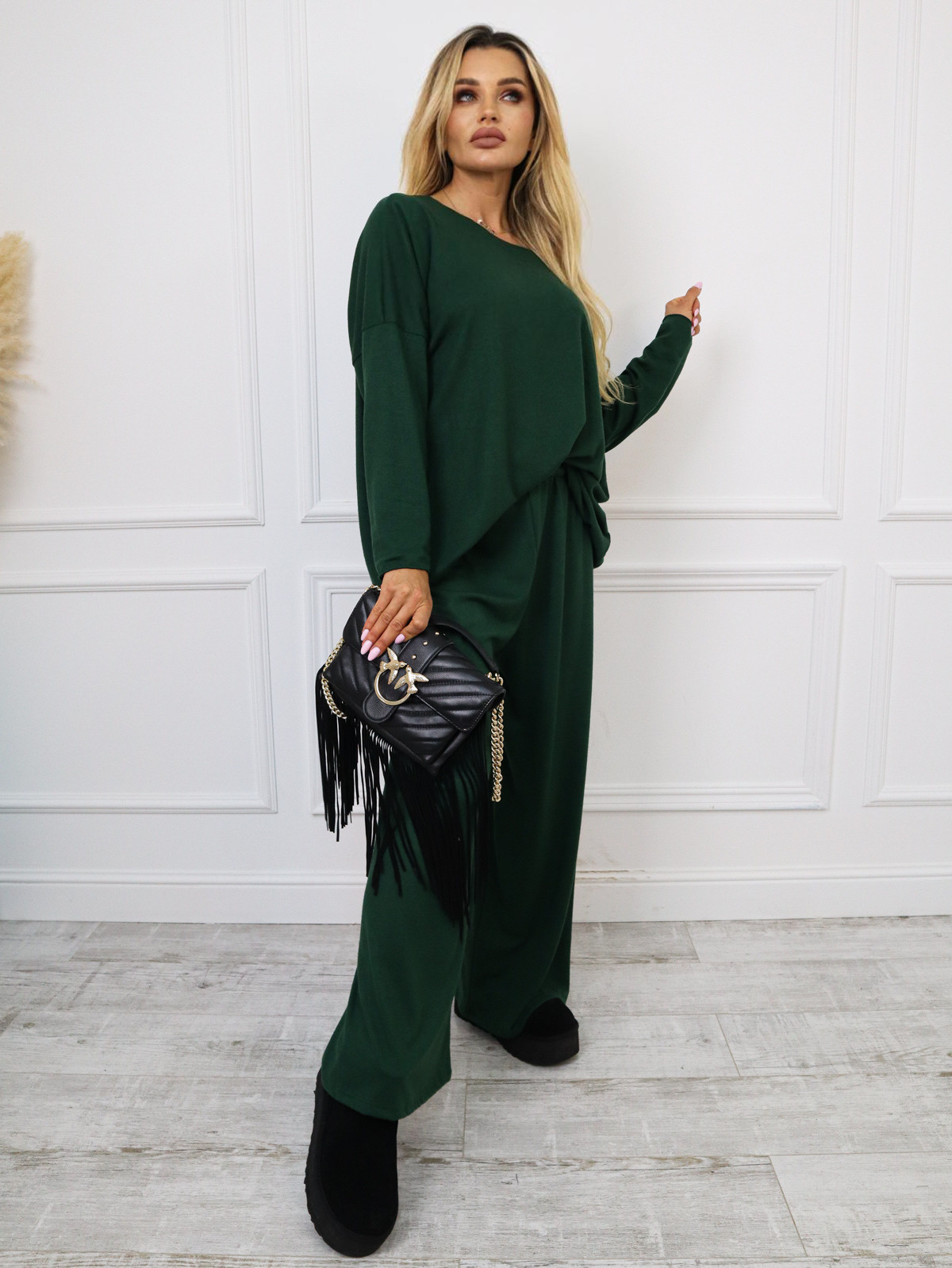 SPODNIE DZIANINOWE Z SZEROKIMI NOGAWKAMI- ZIELONE