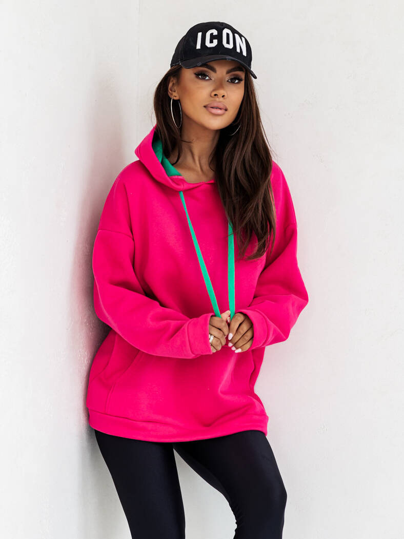 CIEPŁA BLUZA OVERSIZE Z KAPTUREM I ŚCIĄGACZEM-FUKSJA
