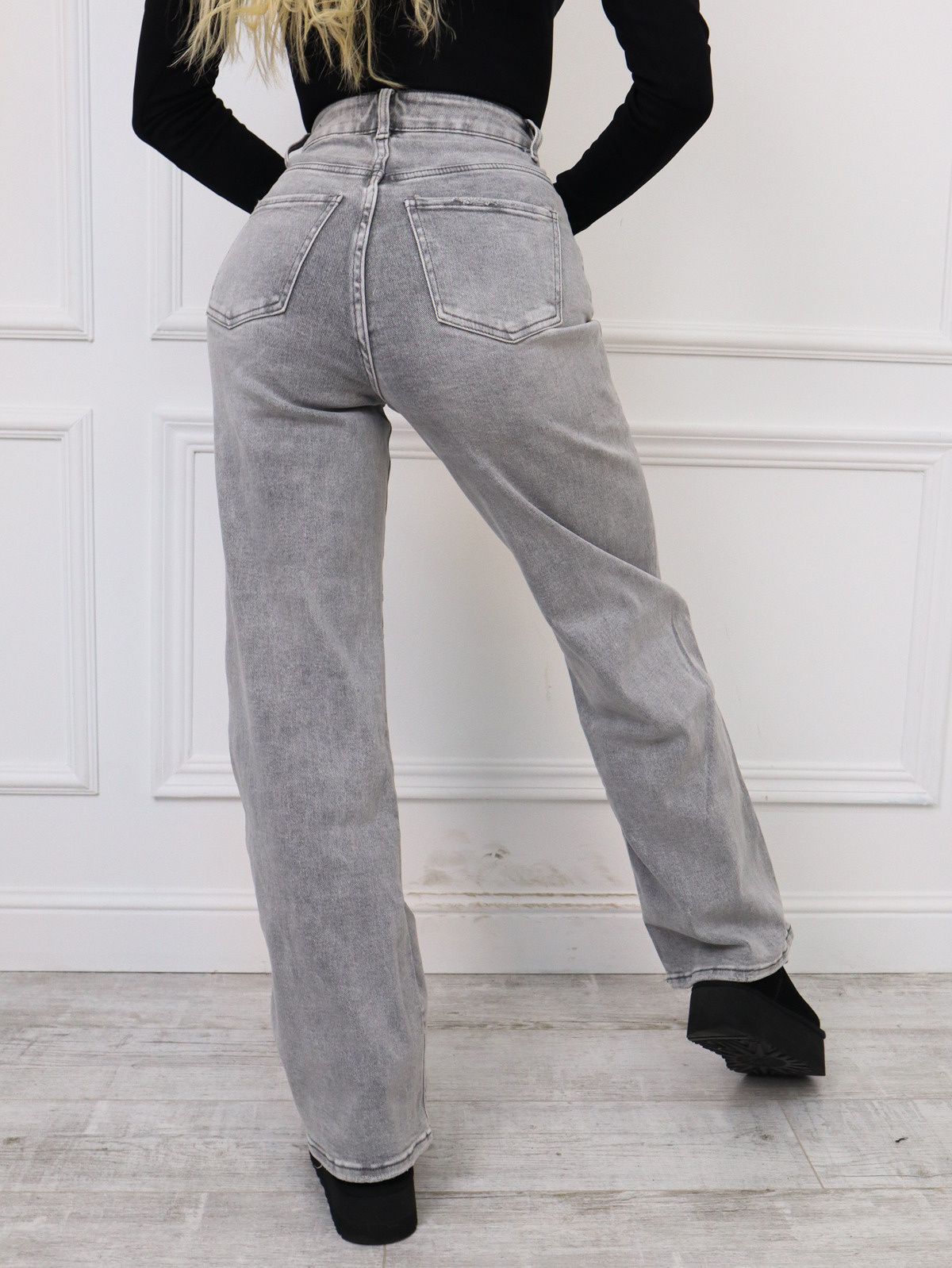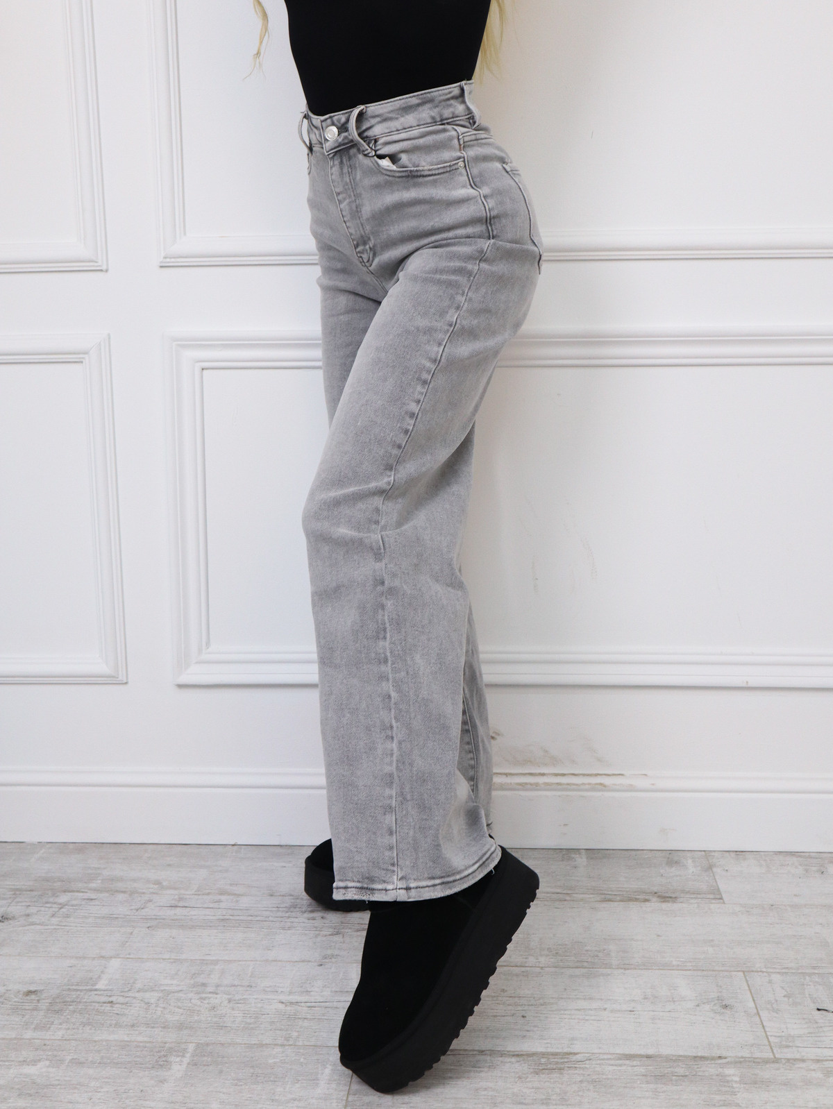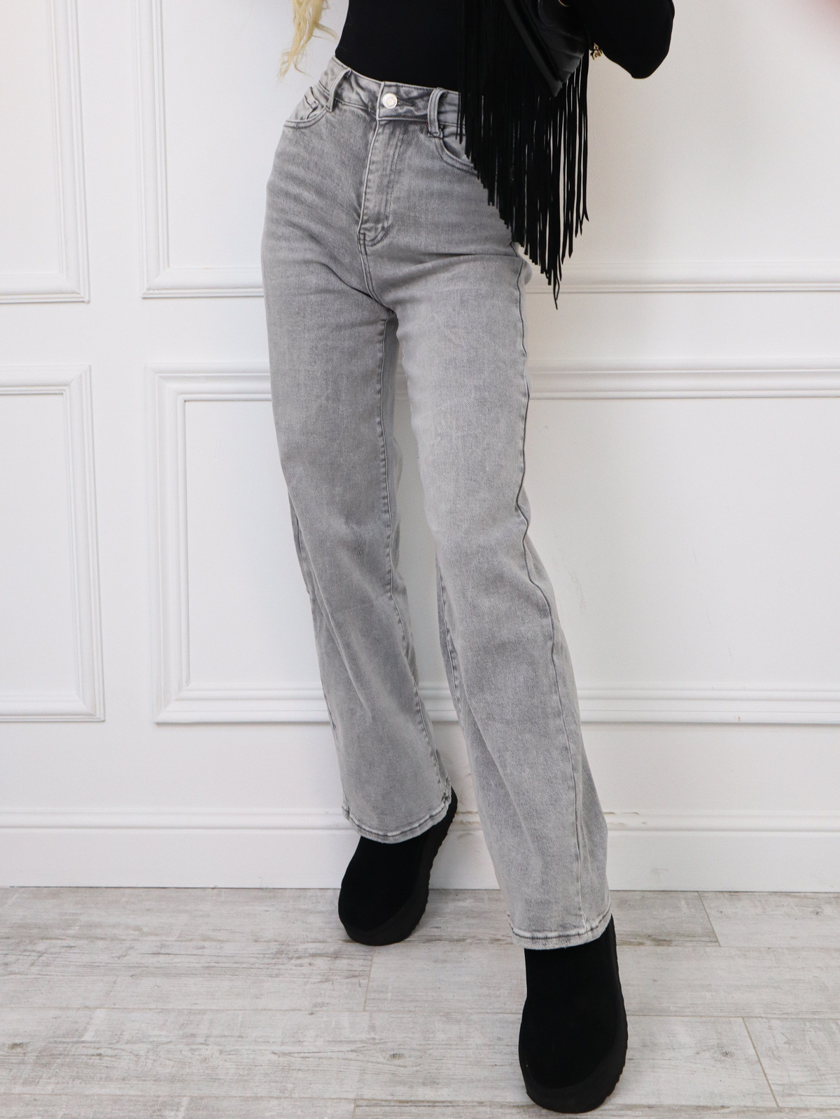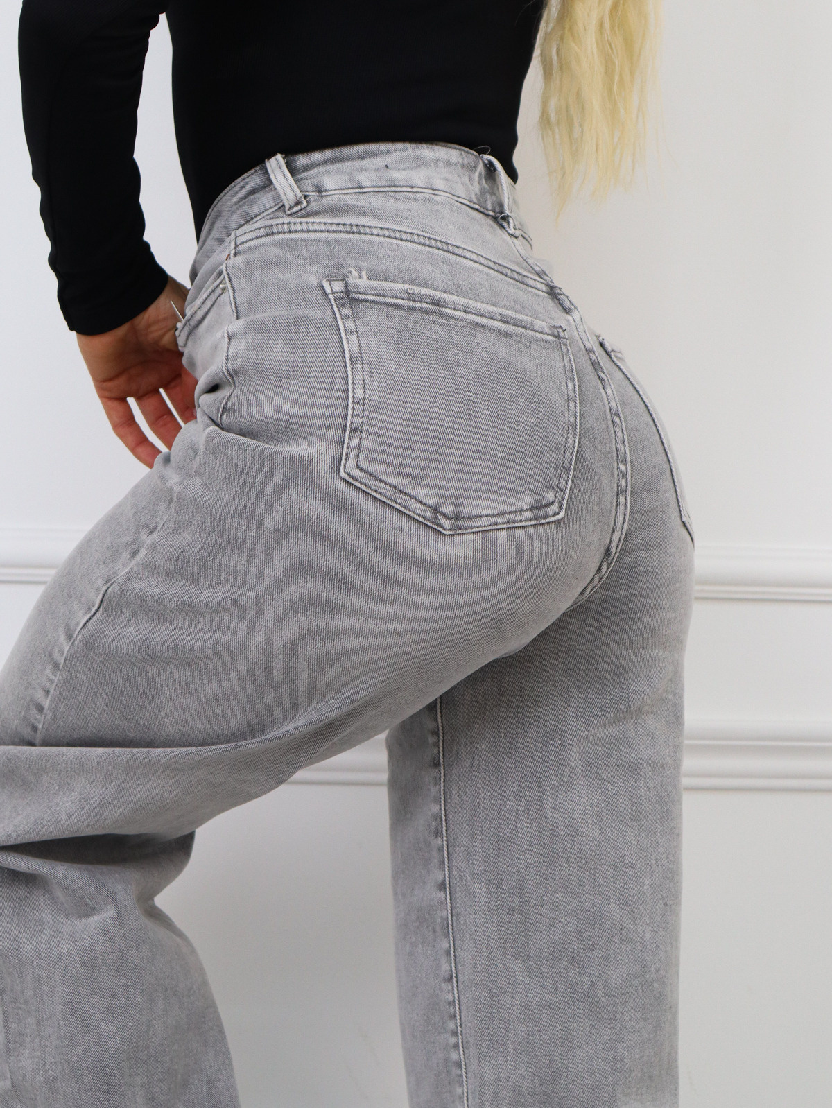 SPODNIE JEANSOWE Z SZEROKĄ NOGAWKĄ I WYSOKIM STANEM- SZARE