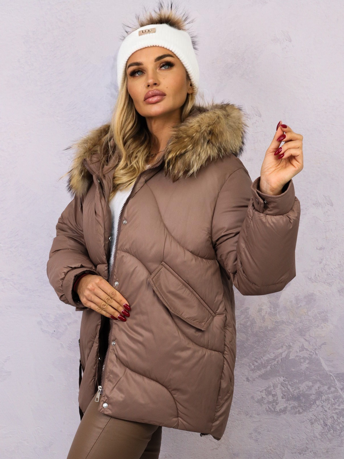 KURTKA ASYMETRYCZKA Z ZAWIESZKA PRZY KIESZENI I TROCZKAMI- BRĄZOWA