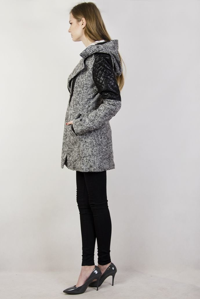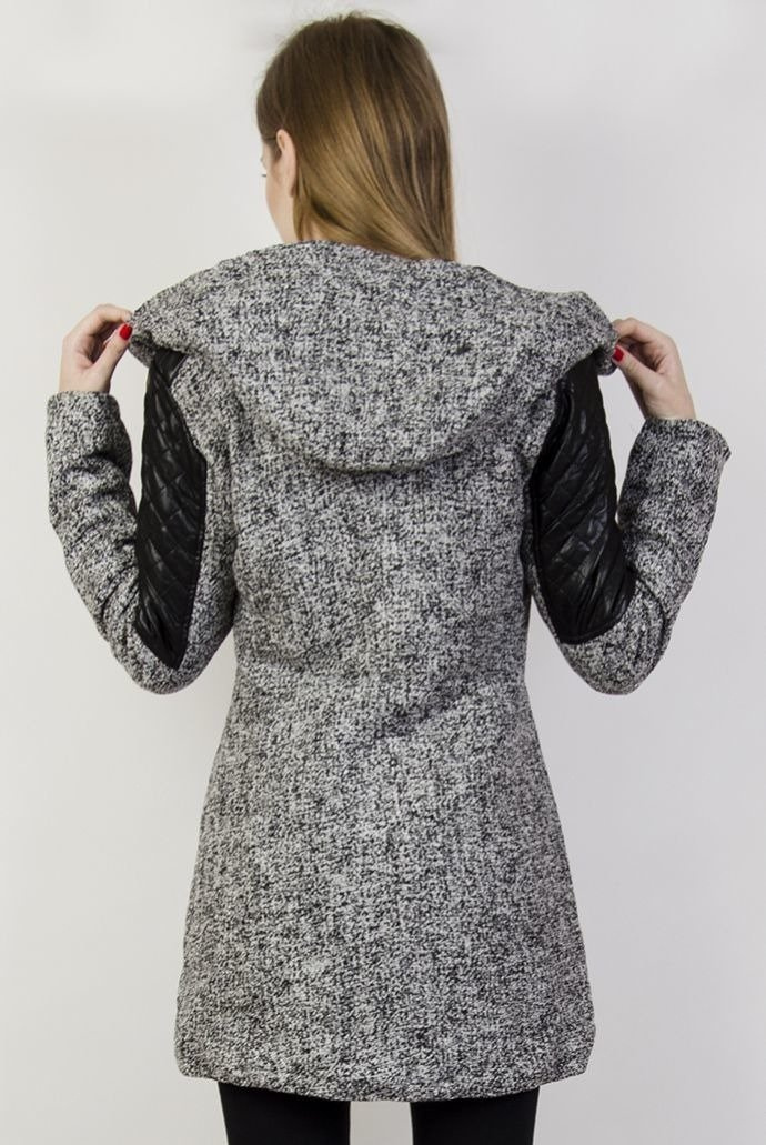 Jasnoszary płaszcz z kapturem i czarnymi wstawkami