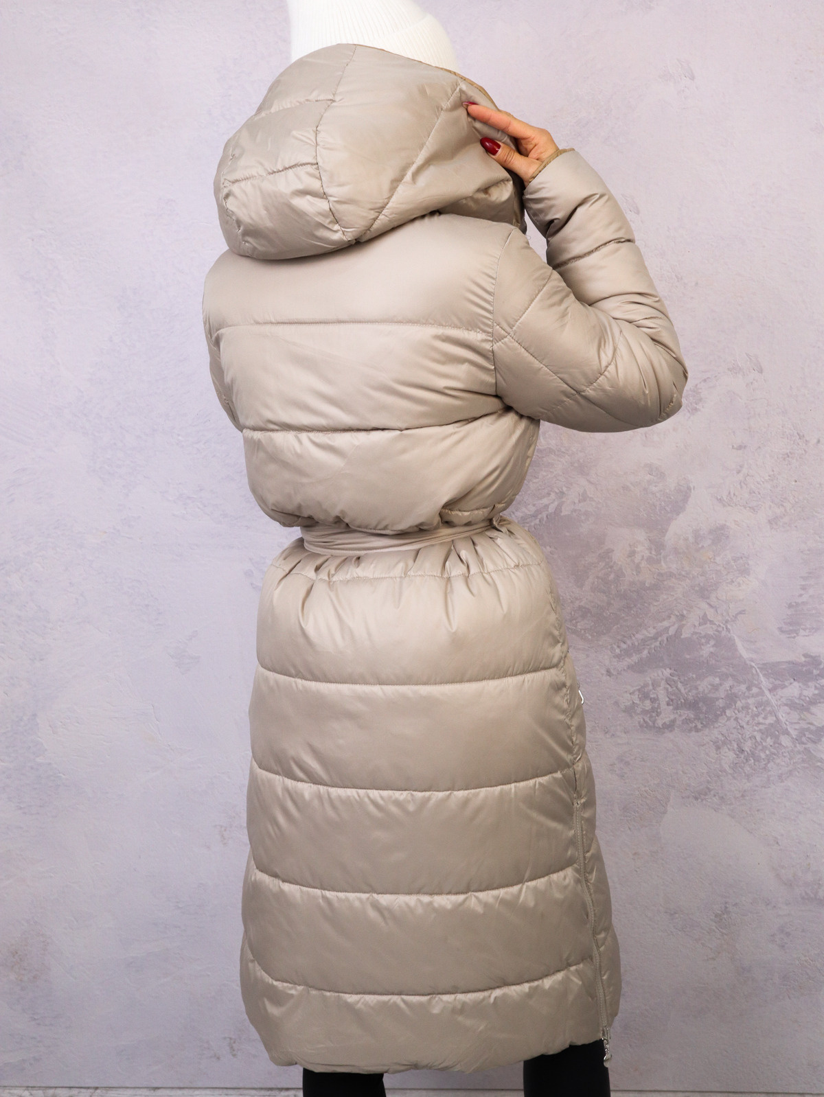 PŁASZCZ DWUSTRONNY Z WIĄZANIEM W PASIE- BEŻOWO-BRĄZOWY