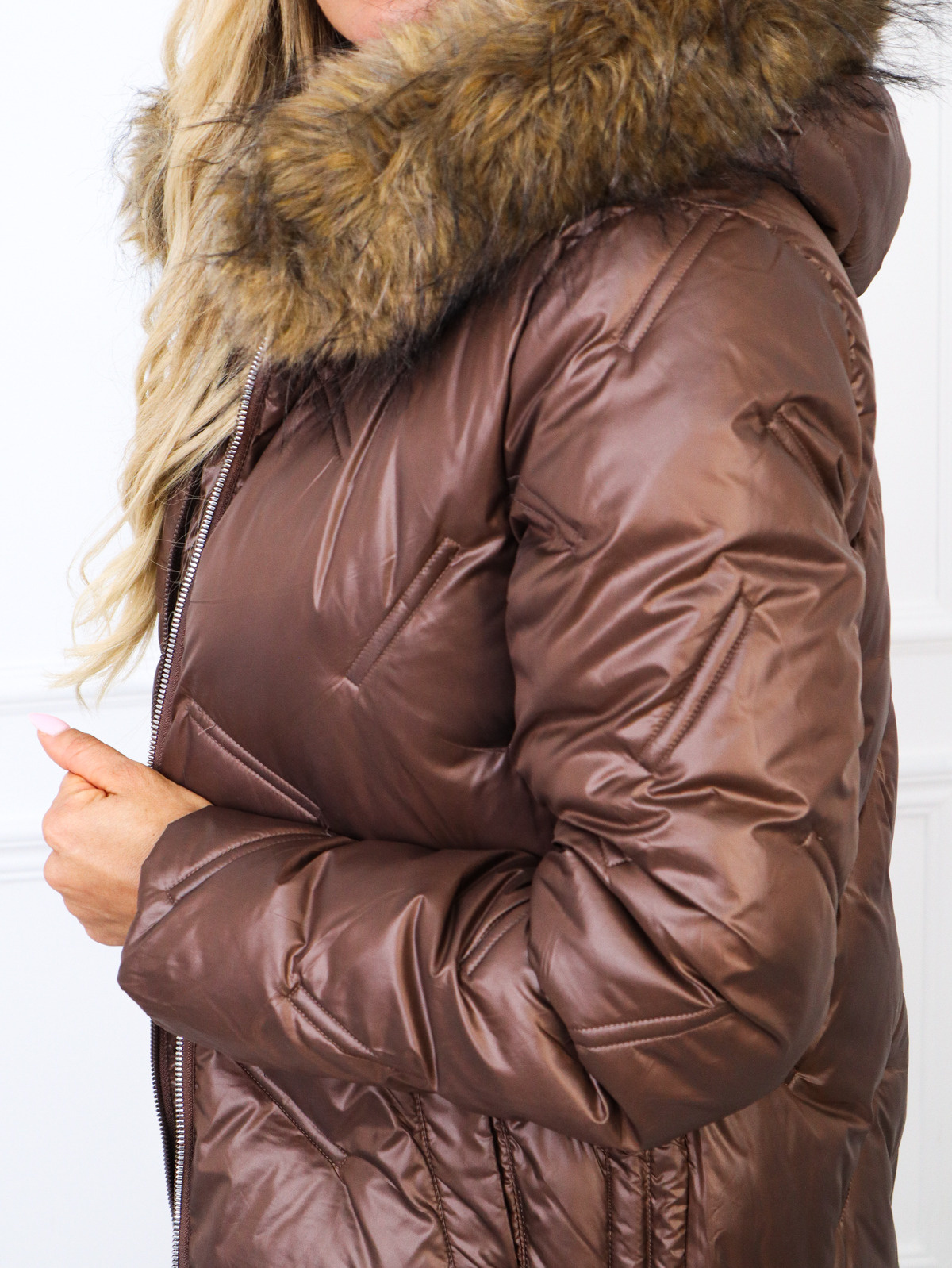 PIKOWANA KURTKA ZE ŚCIĄGACZAMI PO BOKACH- BRĄZOWA