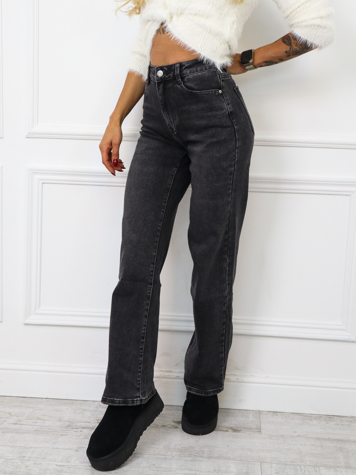 SPODNIE JEANSOWE Z PROSTYMI SZEROKIMI NOGAWKAMI- CIEMNO SZARE