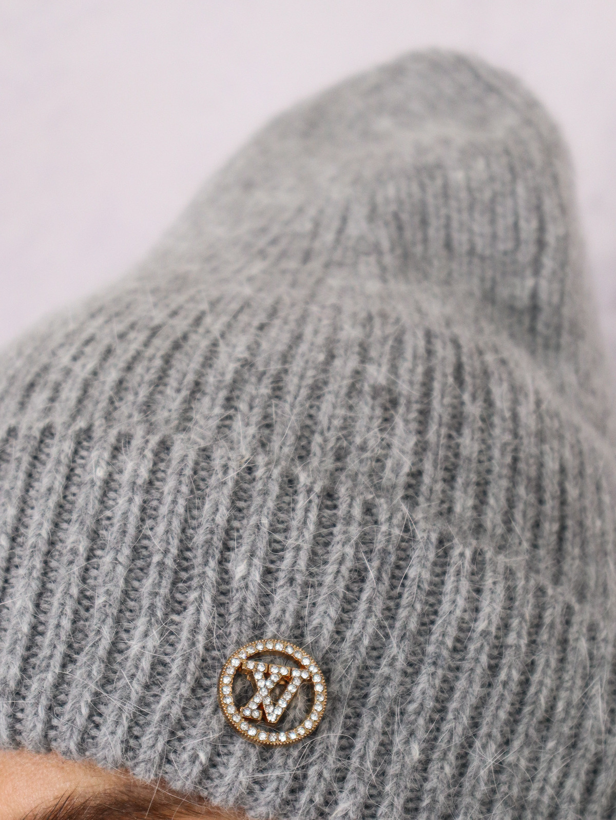 CZAPKA ZIMOWA Z OZDOBNĄ ZAWIESZKĄ SZARA