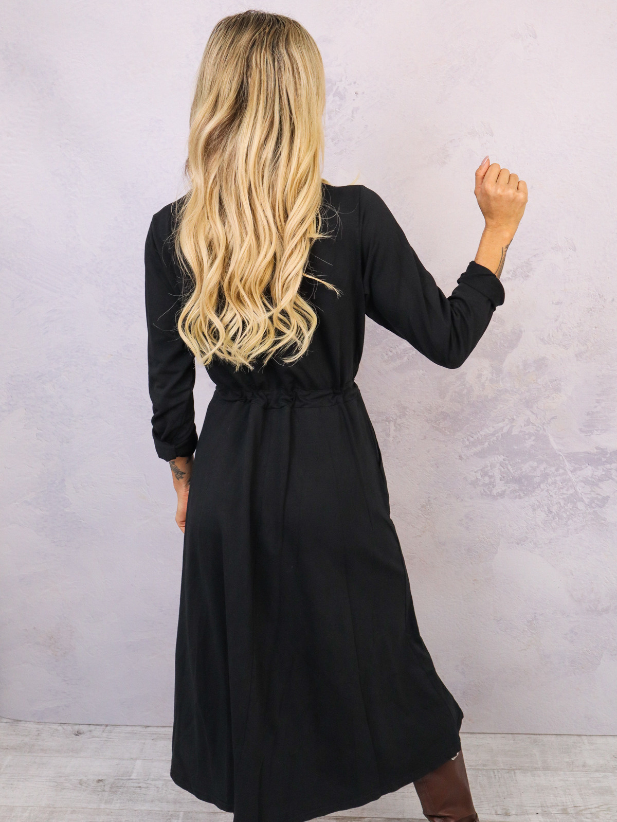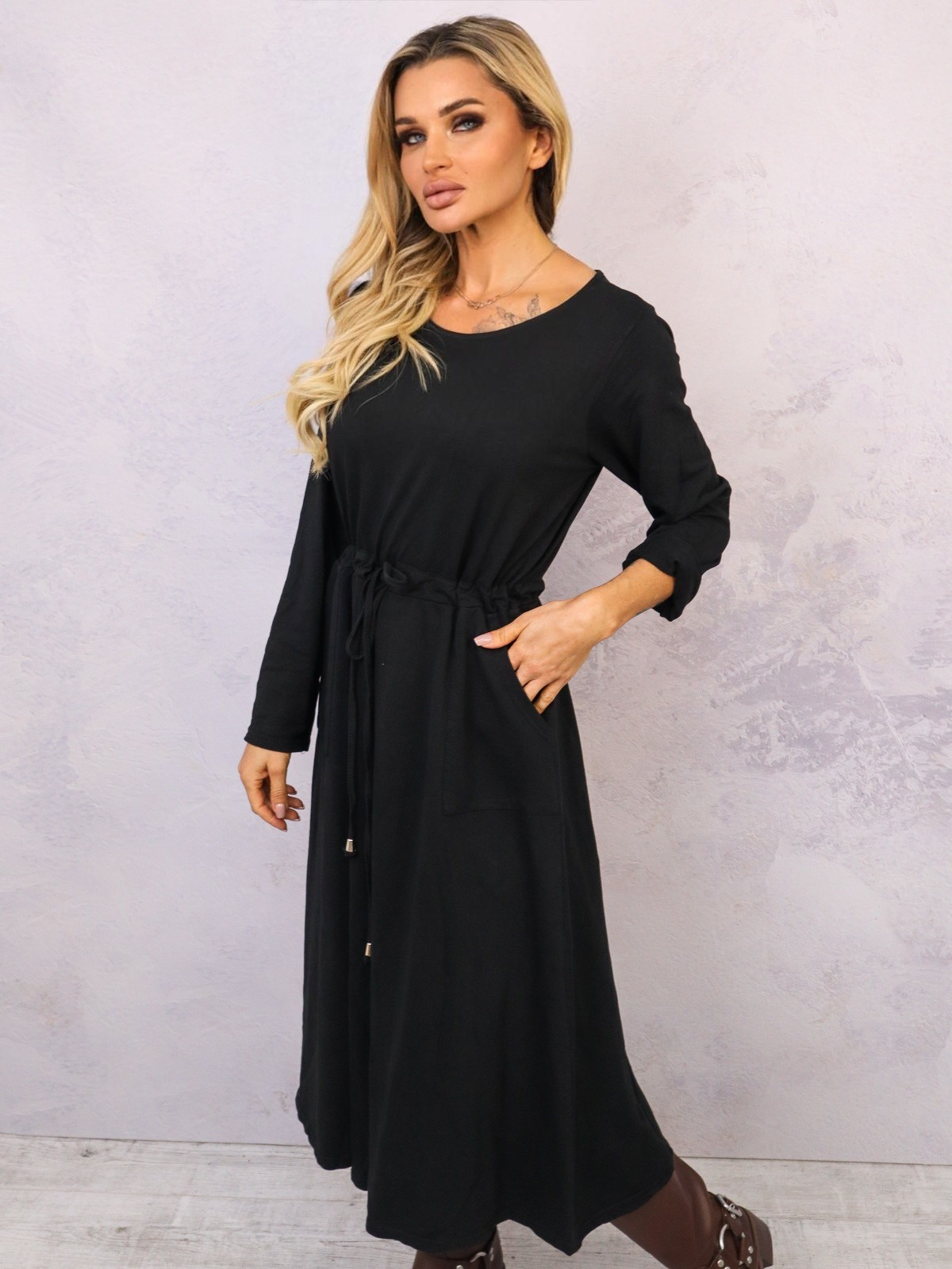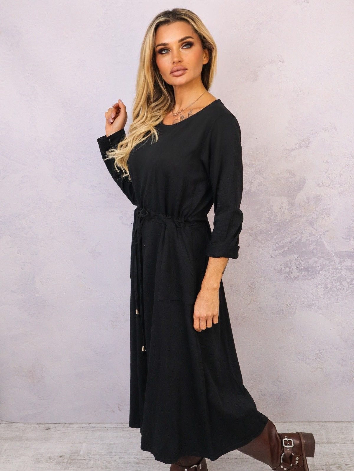 SUKIENKA MIDI WIĄZANA W PASIE- CZARNA