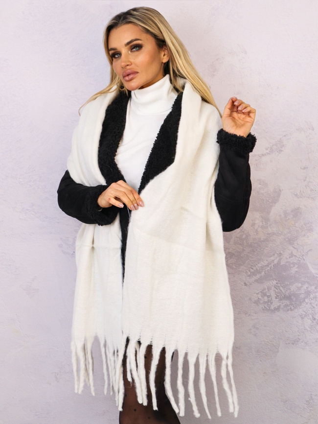 DUŻY CIEPŁY I GRUBY SZAL Z FRĘDZLAMI-EKRI