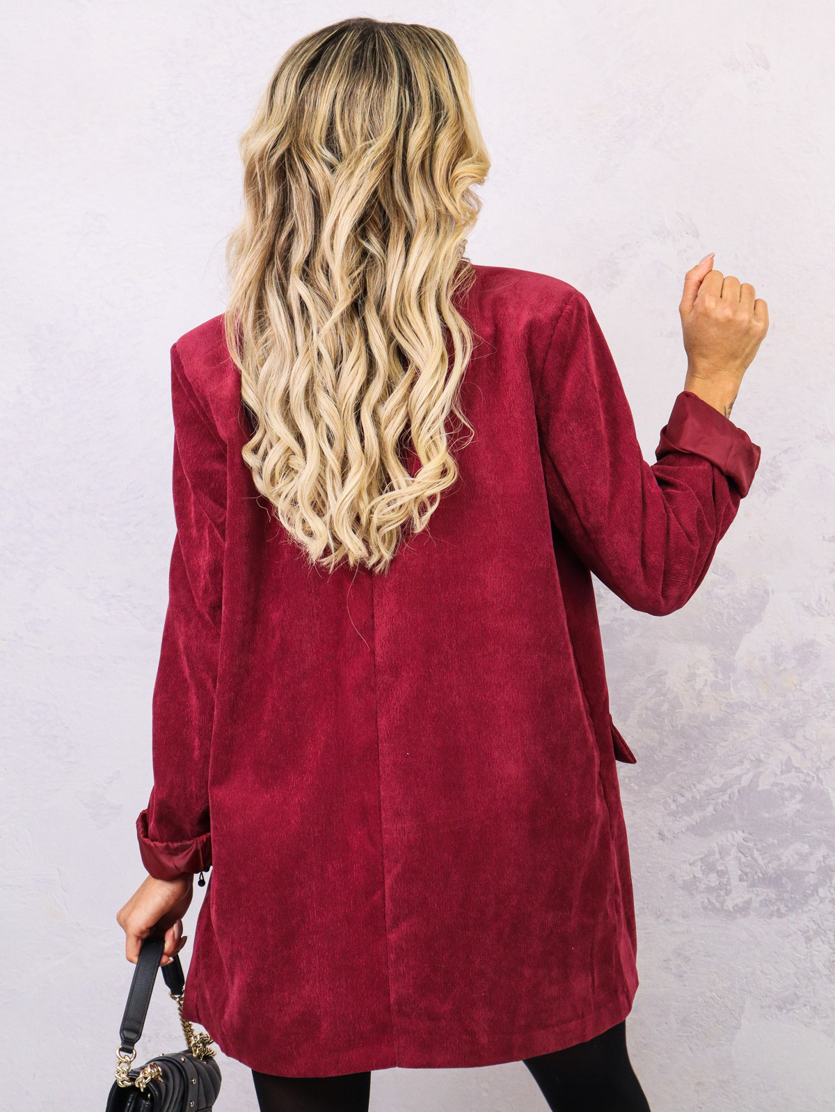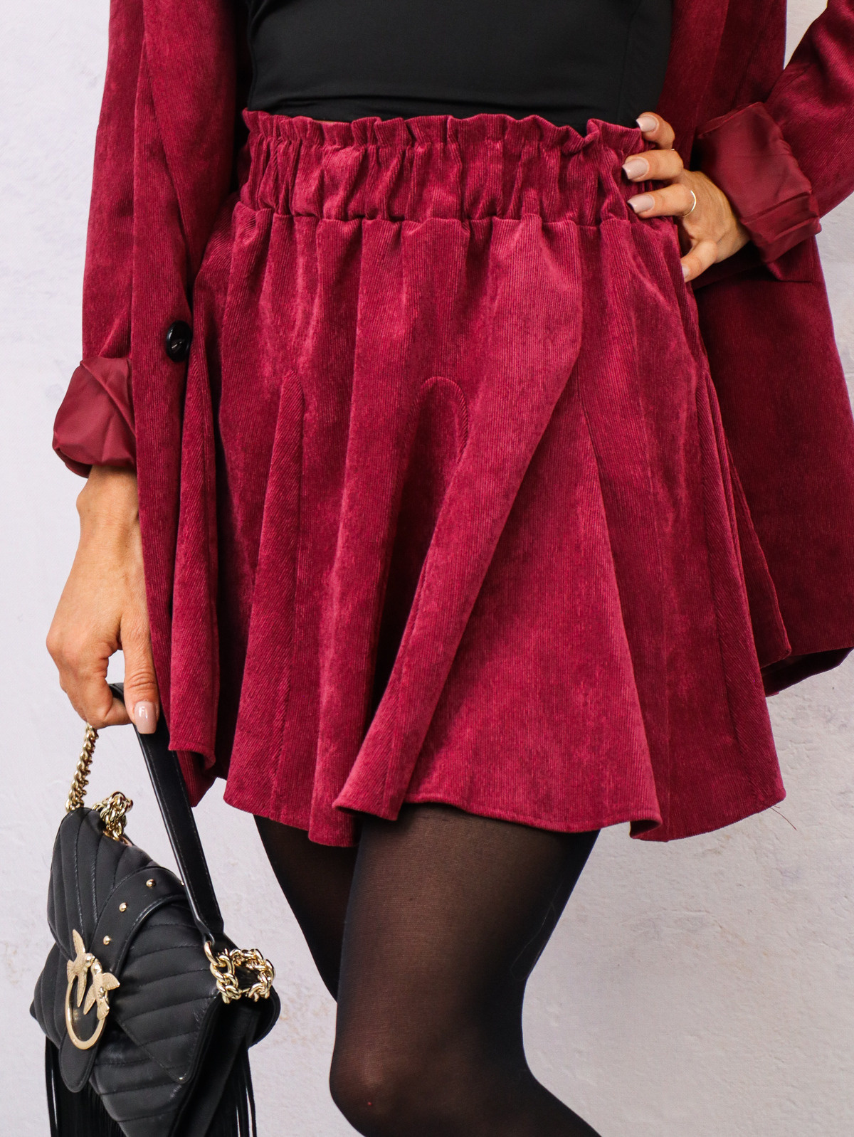 PRĄŻKOWANY KOMPLET MARYNARKA+ SPÓDNICA- BORDOWY
